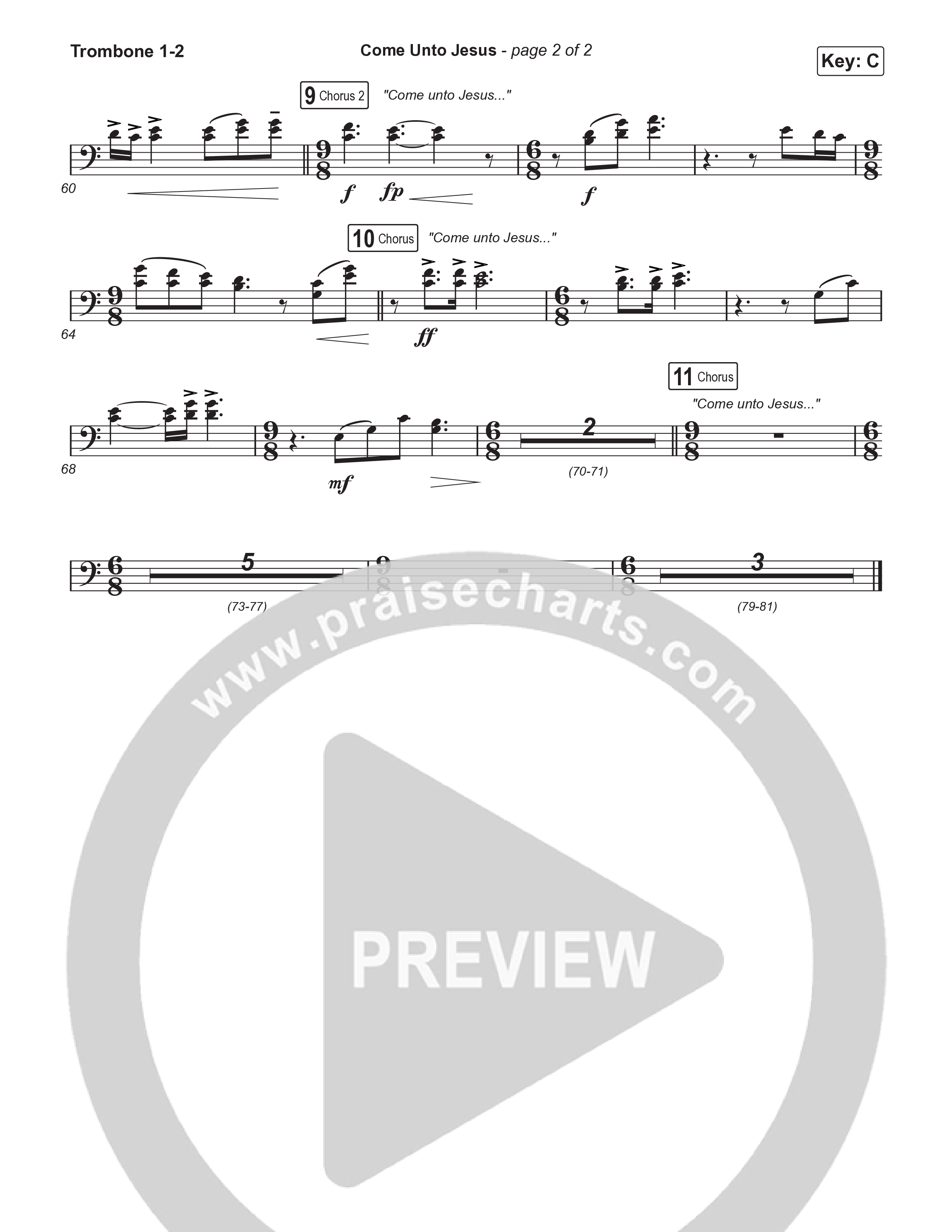 Download the Trombone 1,2 sheet music for Come Unto Jesus (Unison/2-Part) by Keith & Kristyn Getty / Laura Story / Jordan Kauflin / Arr. Luke Gambill, from the album Come Unto Jesus. This song was arranged by Luke Gambill / Daniel Galbraith / Grant Wall in the key of C.