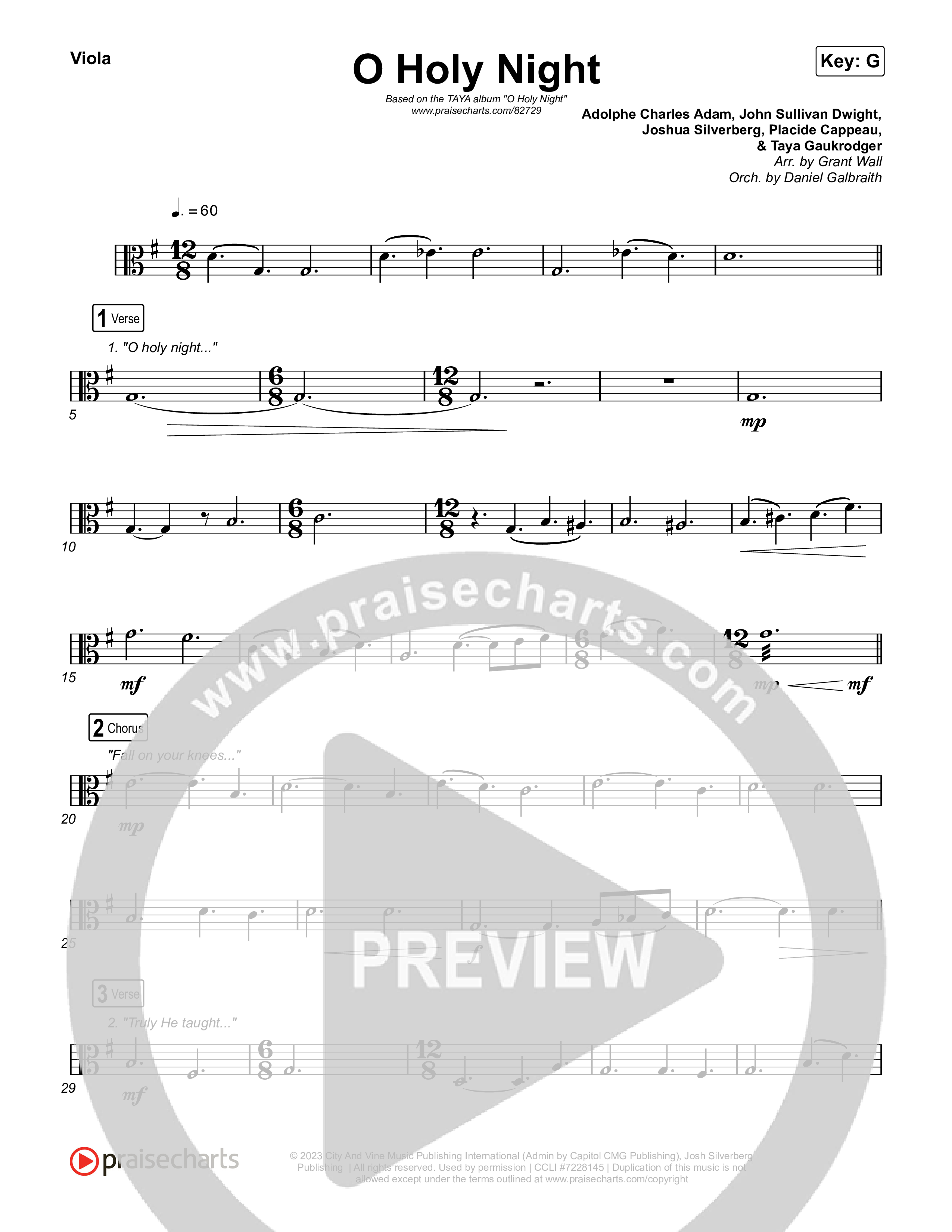 Download the Viola sheet music for O Holy Night by TAYA, from the album O Holy Night. This song was arranged by Grant Wall / Daniel Galbraith in the key of Ab, G.