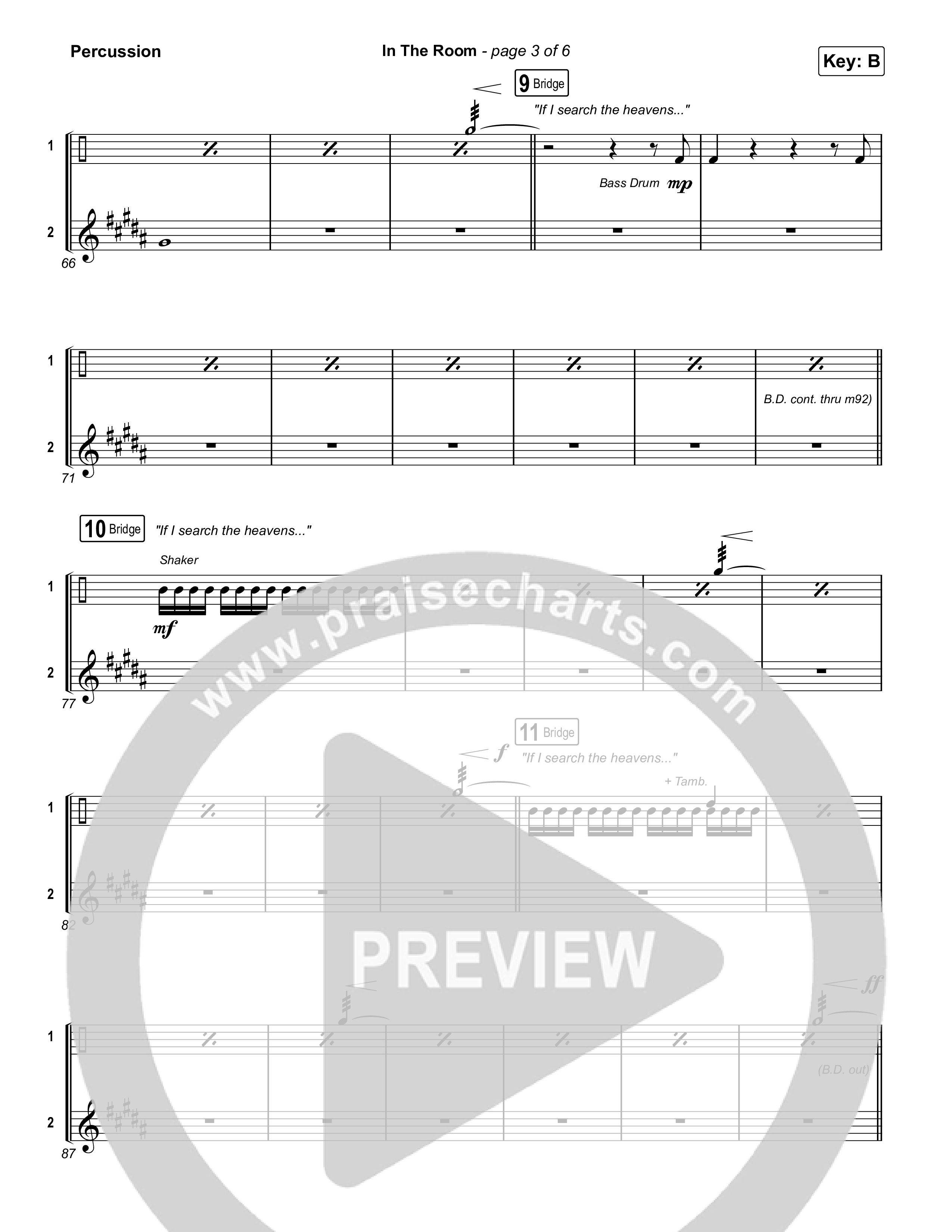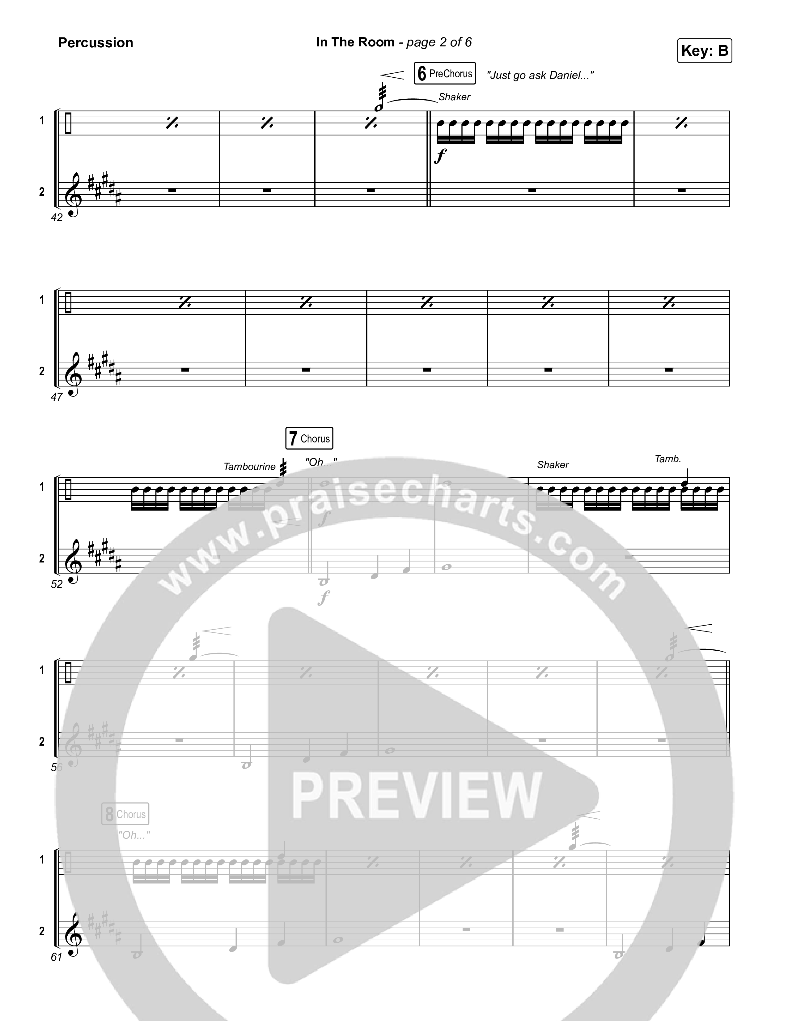Download the percussion sheet music for In The Room by Maverick City Music / Tasha Cobbs Leonard, from the album Maverick Way Complete. This song was arranged by Daniel Galbraith in the key of B, Bb.