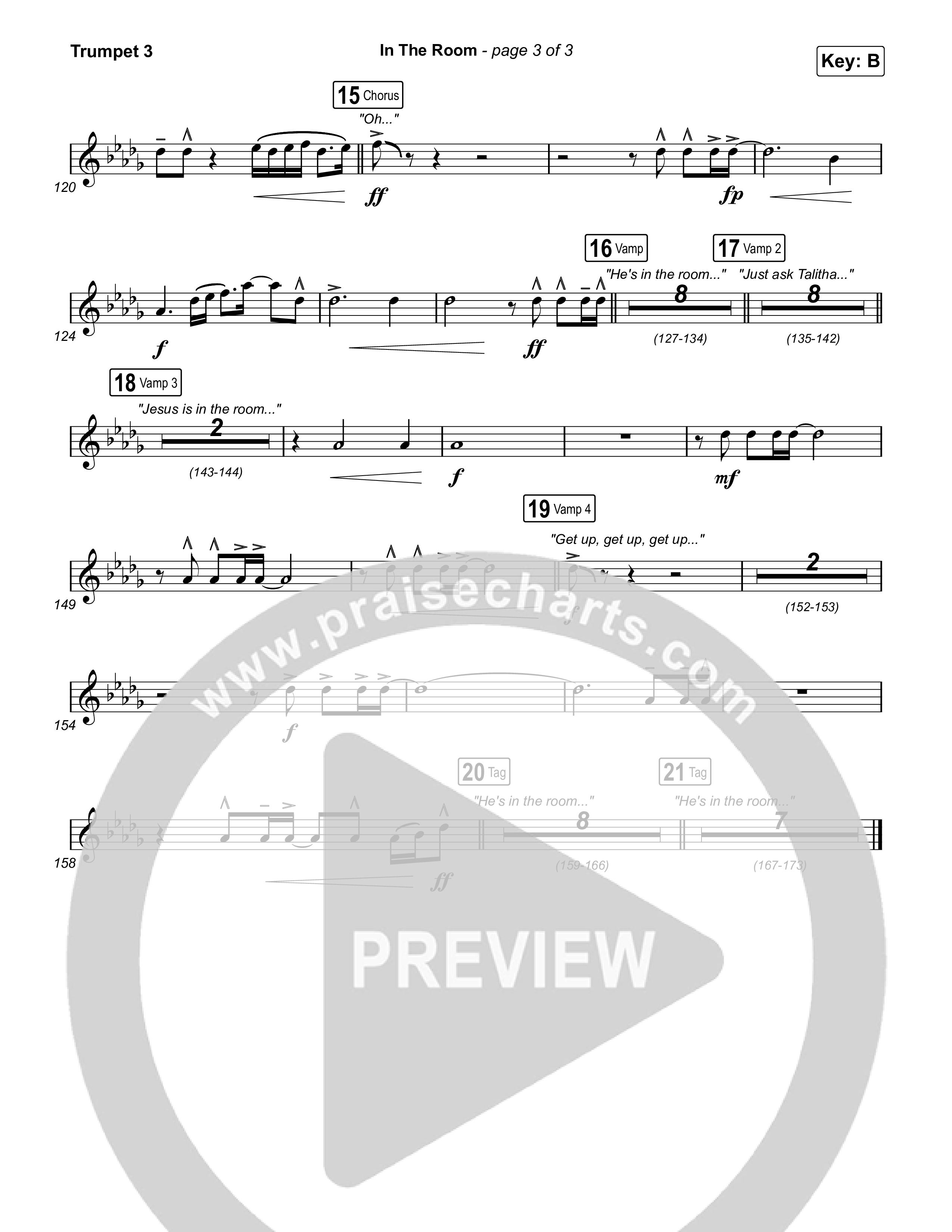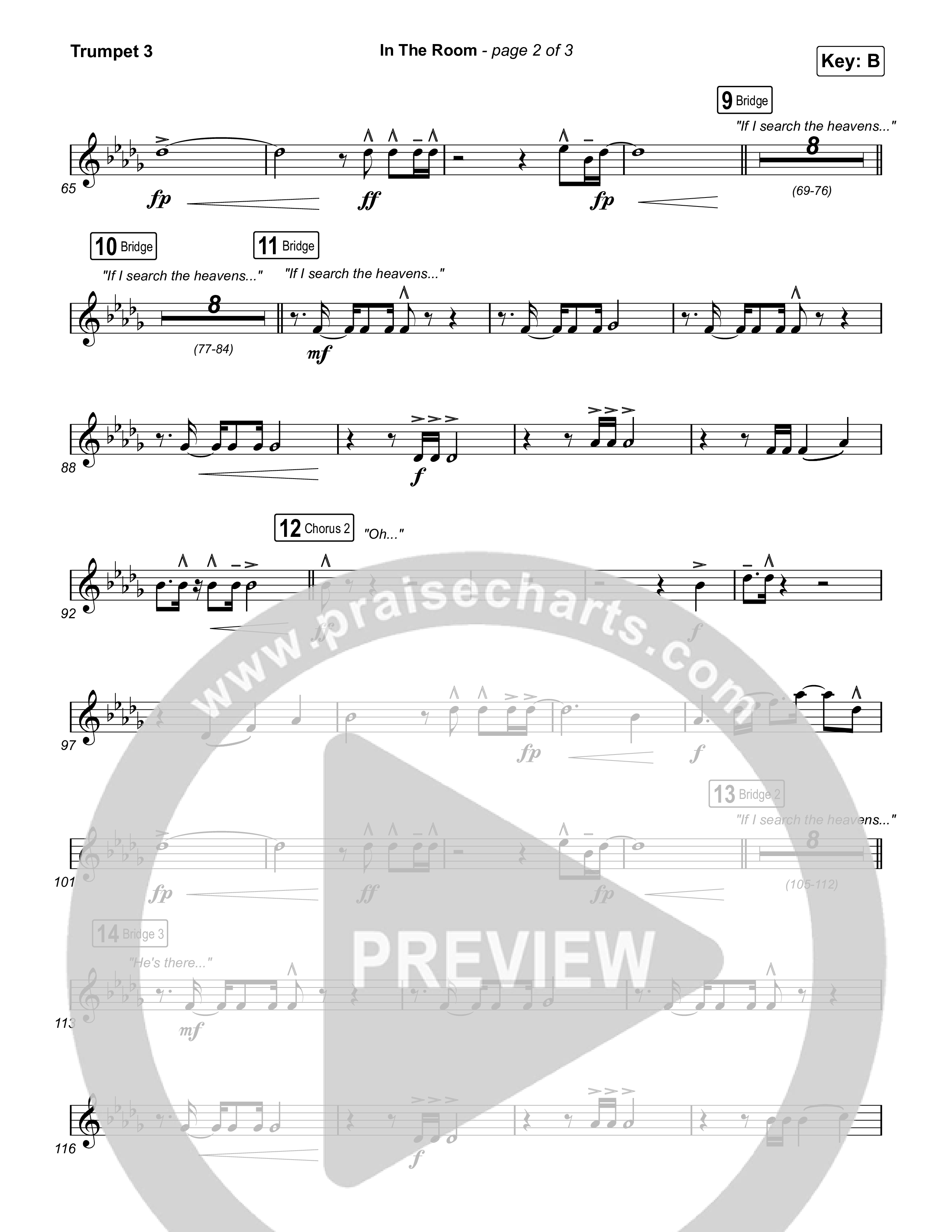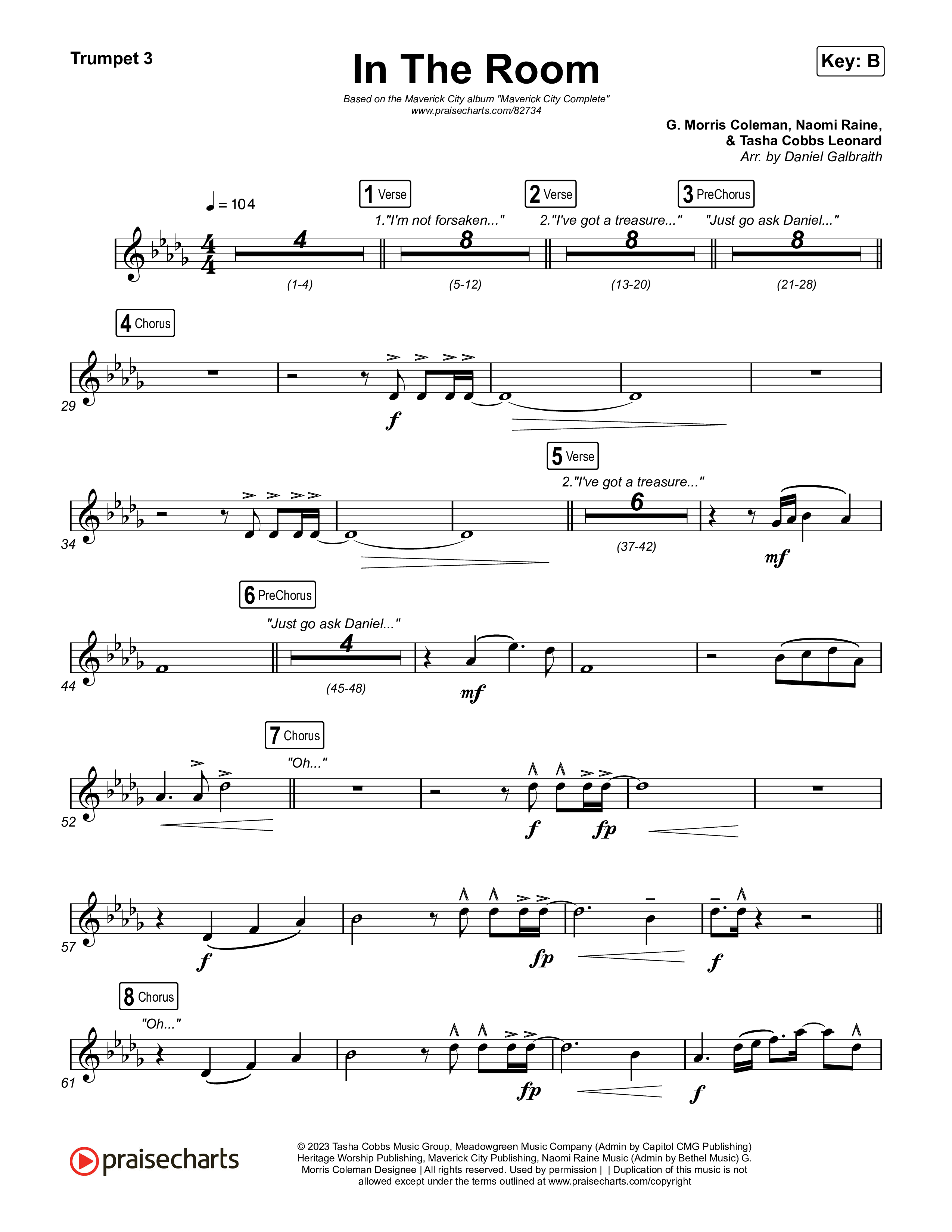 Download the Trumpet 3 sheet music for In The Room by Maverick City Music / Tasha Cobbs Leonard, from the album Maverick Way Complete. This song was arranged by Daniel Galbraith in the key of B, Bb.