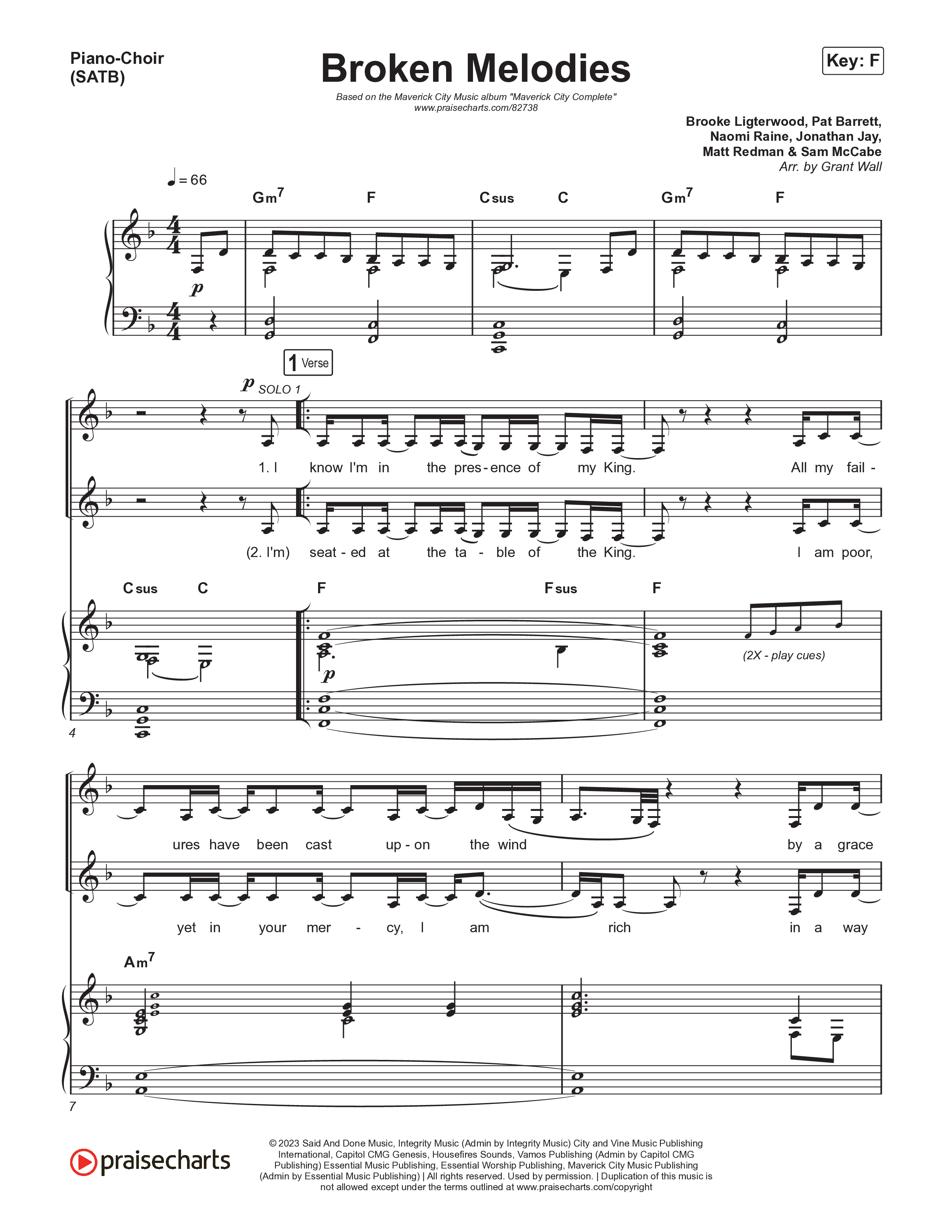 Download the PDF sheet music for Broken Melodies by Maverick City Music / Roosevelt Stewart, from the album Maverick Way Complete. This song was arranged by Grant Wall in the key of E, F.