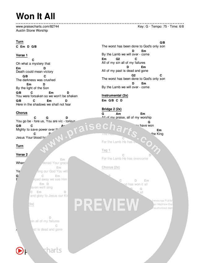 Won It All Chords PDF (Austin Stone Worship)