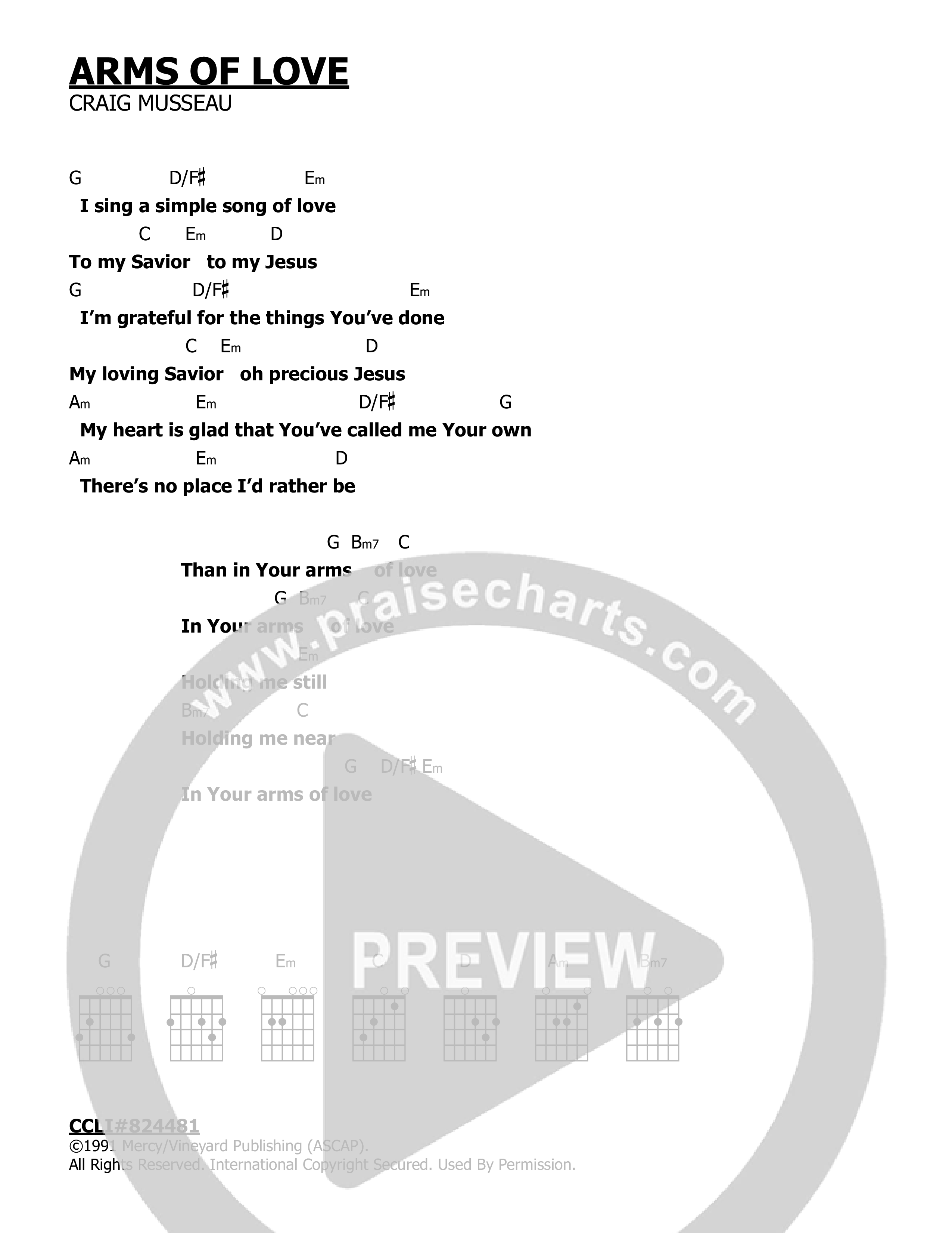 Arms Of Love Chord Chart (Dreaming The Impossible / Vineyard Worship)