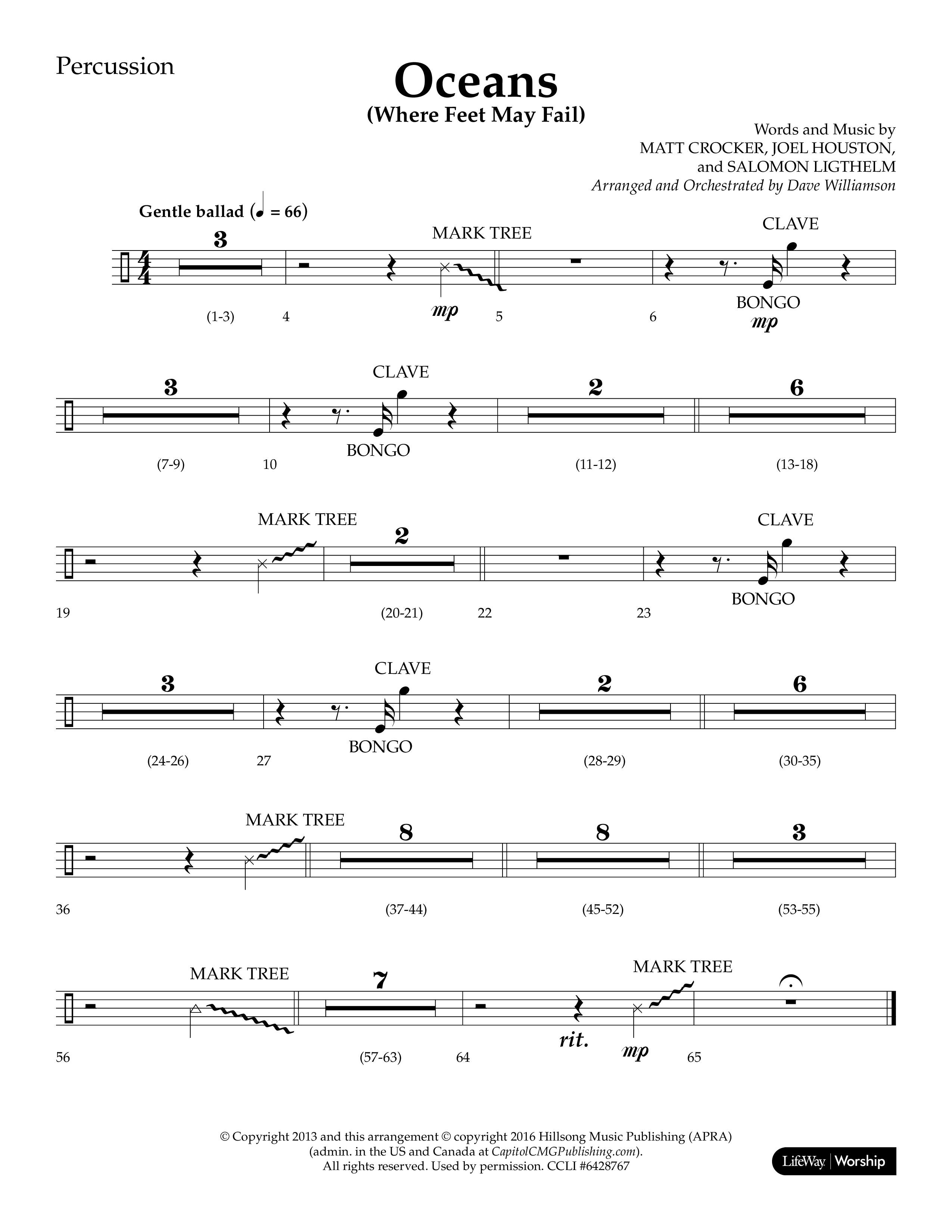 Oceans (Where Feet May Fail) (Choral Anthem SATB) Percussion Sheet Music PDF (Lifeway Choral / Arr. Dave Williamson)