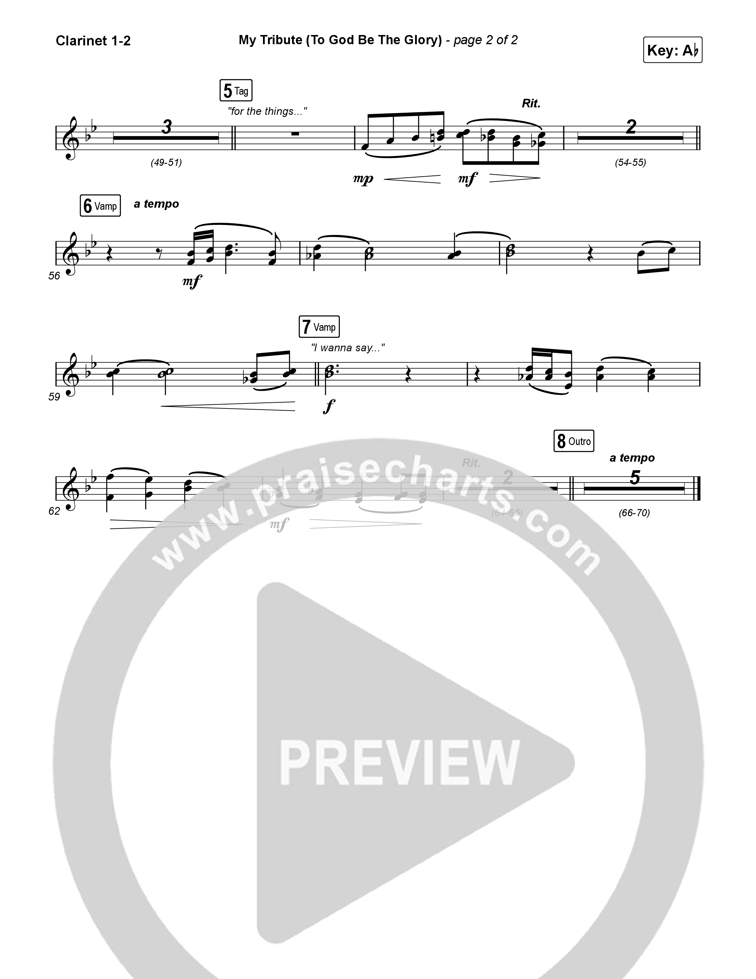 Download the Clarinet sheet music for My Tribute (To God Be The Glory) (Unison/2-Part) by Natalie Grant / CeCe Winans / Arr. Luke Gambill, from the album Seasons. This song was arranged by Luke Gambill / Daniel Galbraith / Grant Wall in the key of Ab.