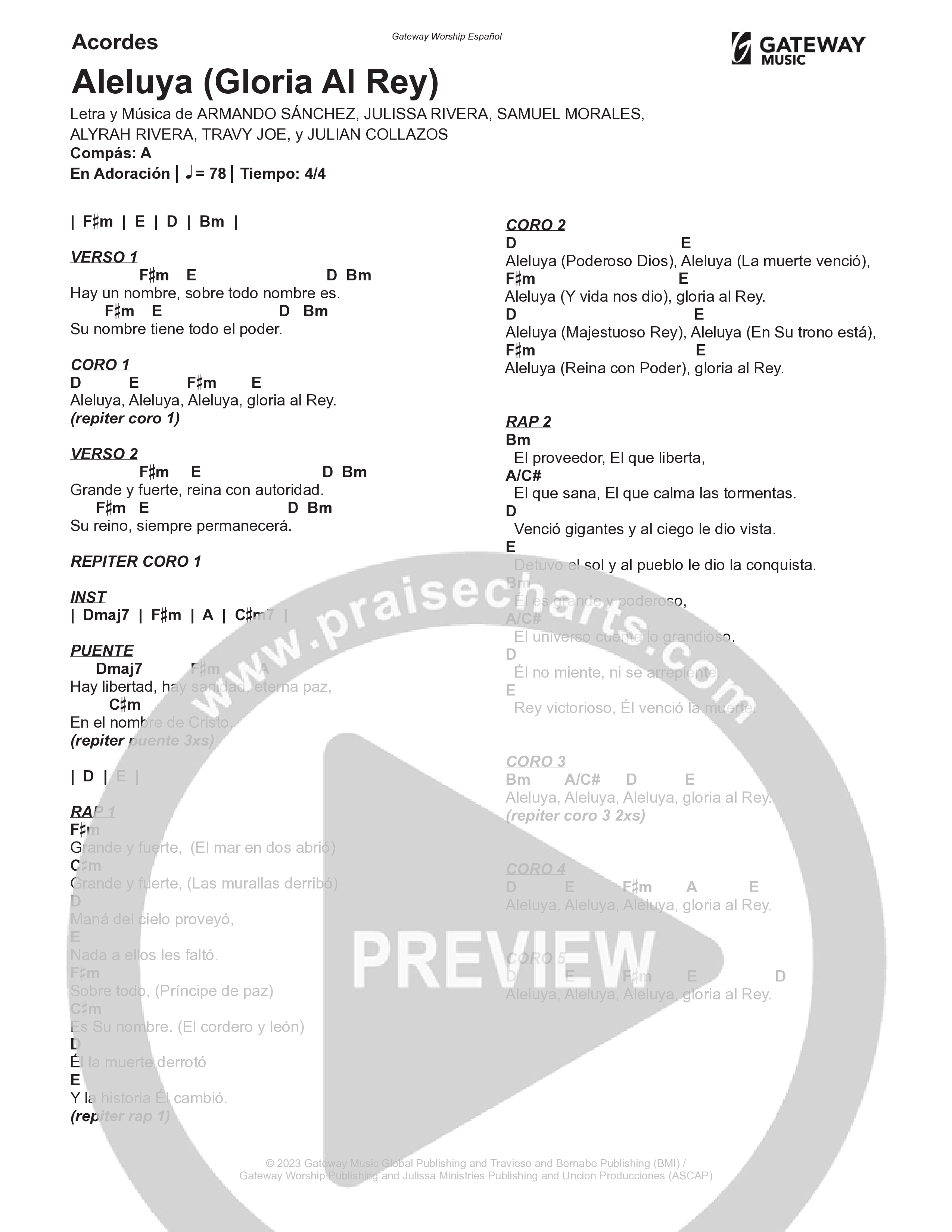 Aleluya (Gloria al Rey) Chords PDF (Gateway Worship Español / Christine D'Clario / Armando Sanchez / Travy Joe)