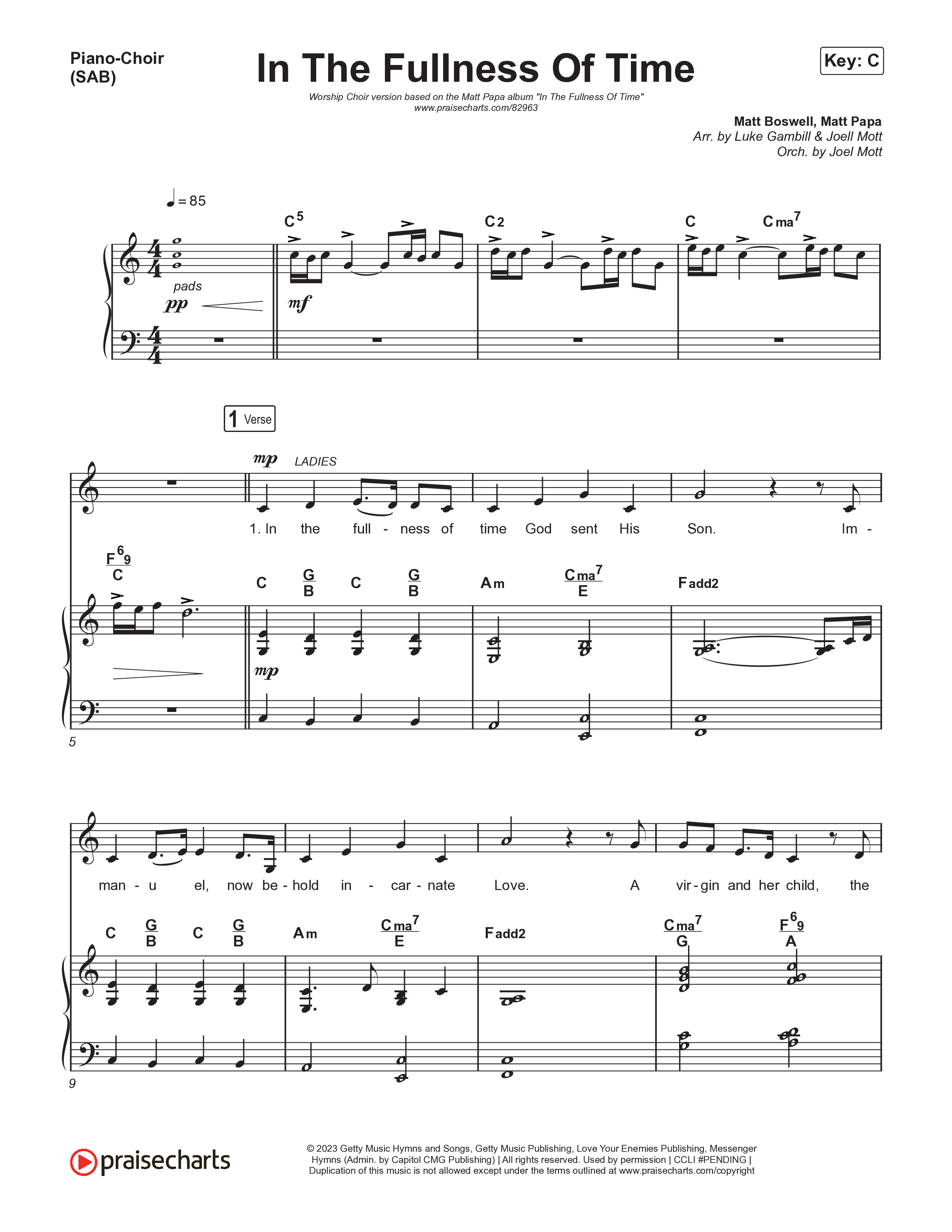 Download the PDF sheet music for In The Fullness Of Time (Worship Choir/SAB) by Matt Papa / Matt Boswell / Arr. Luke Gambill, from the album In The Fullness Of Time. This song was arranged by Luke Gambill / Joel Mott in the key of C.