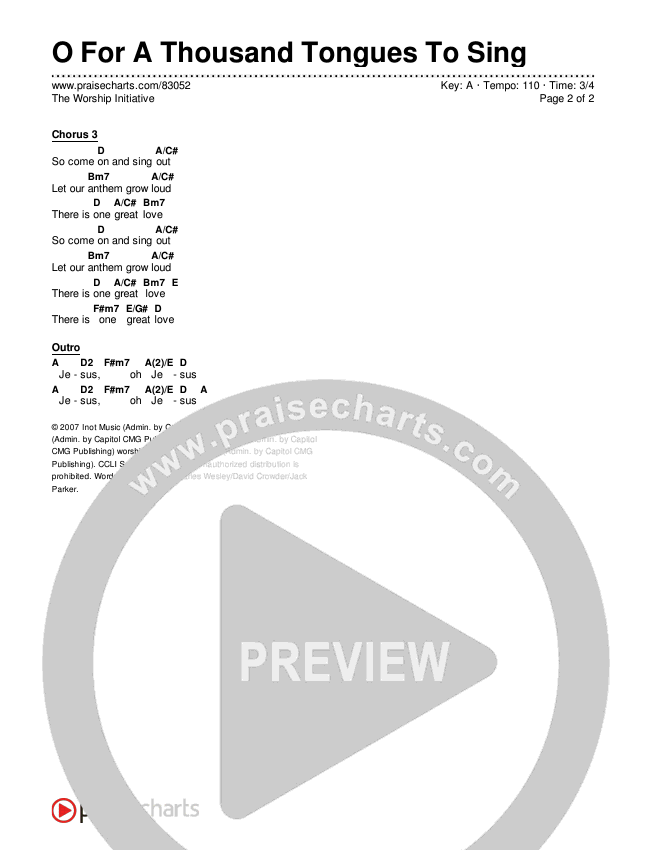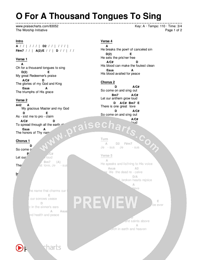 O For A Thousand Tongues To Sing Chords PDF (The Worship Initiative)