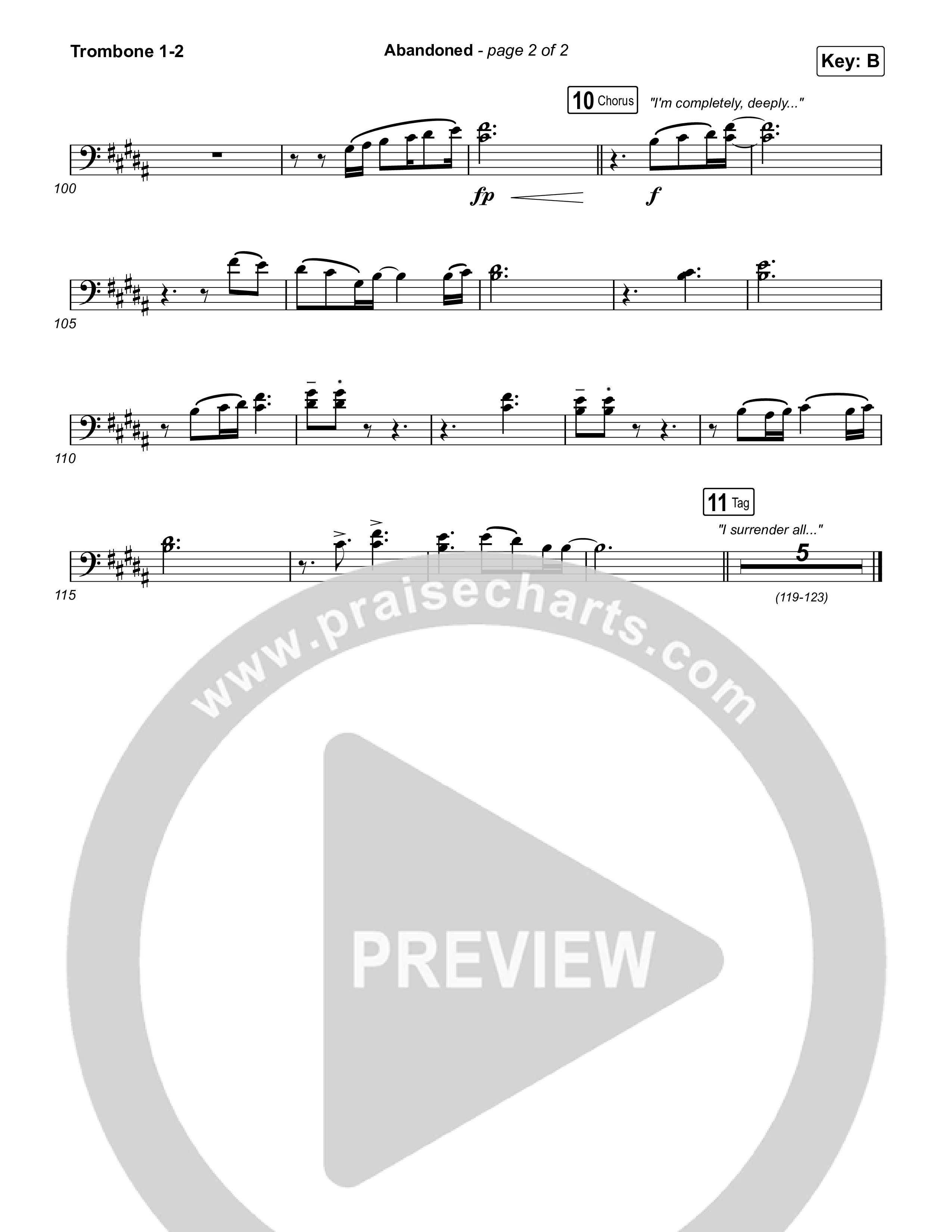 Download the Trombone 1,2 sheet music for Abandoned by Benjamin William Hastings, from the album Abandoned. This song was arranged by Grant Wall / Daniel Galbraith in the key of B, Bb.