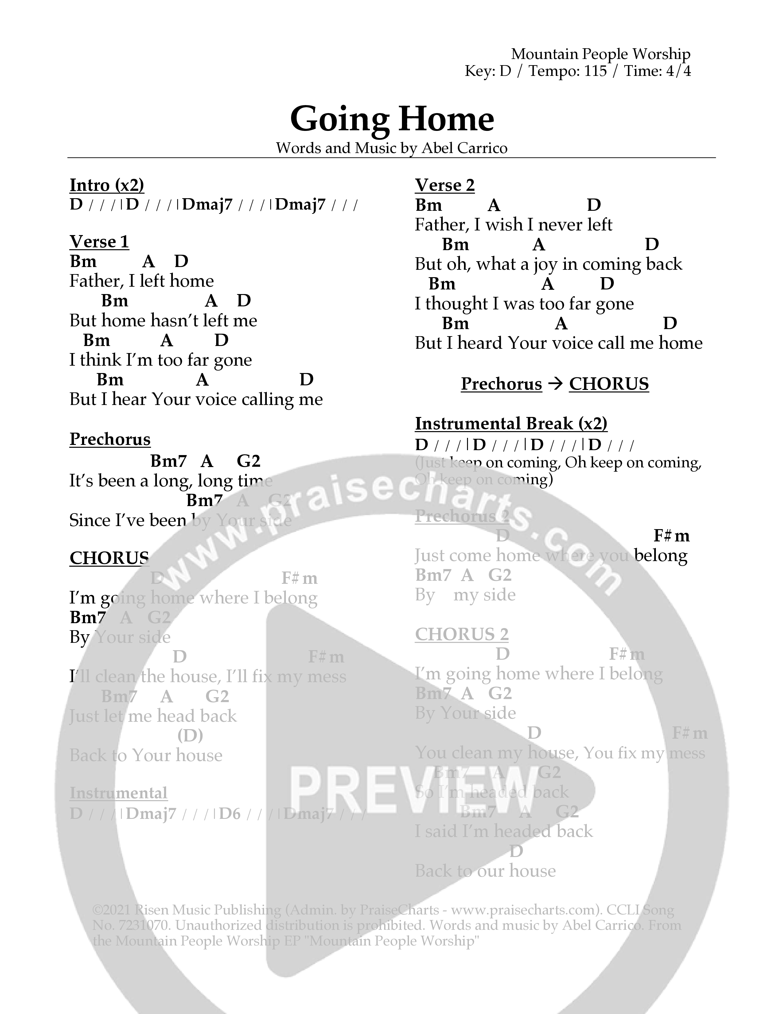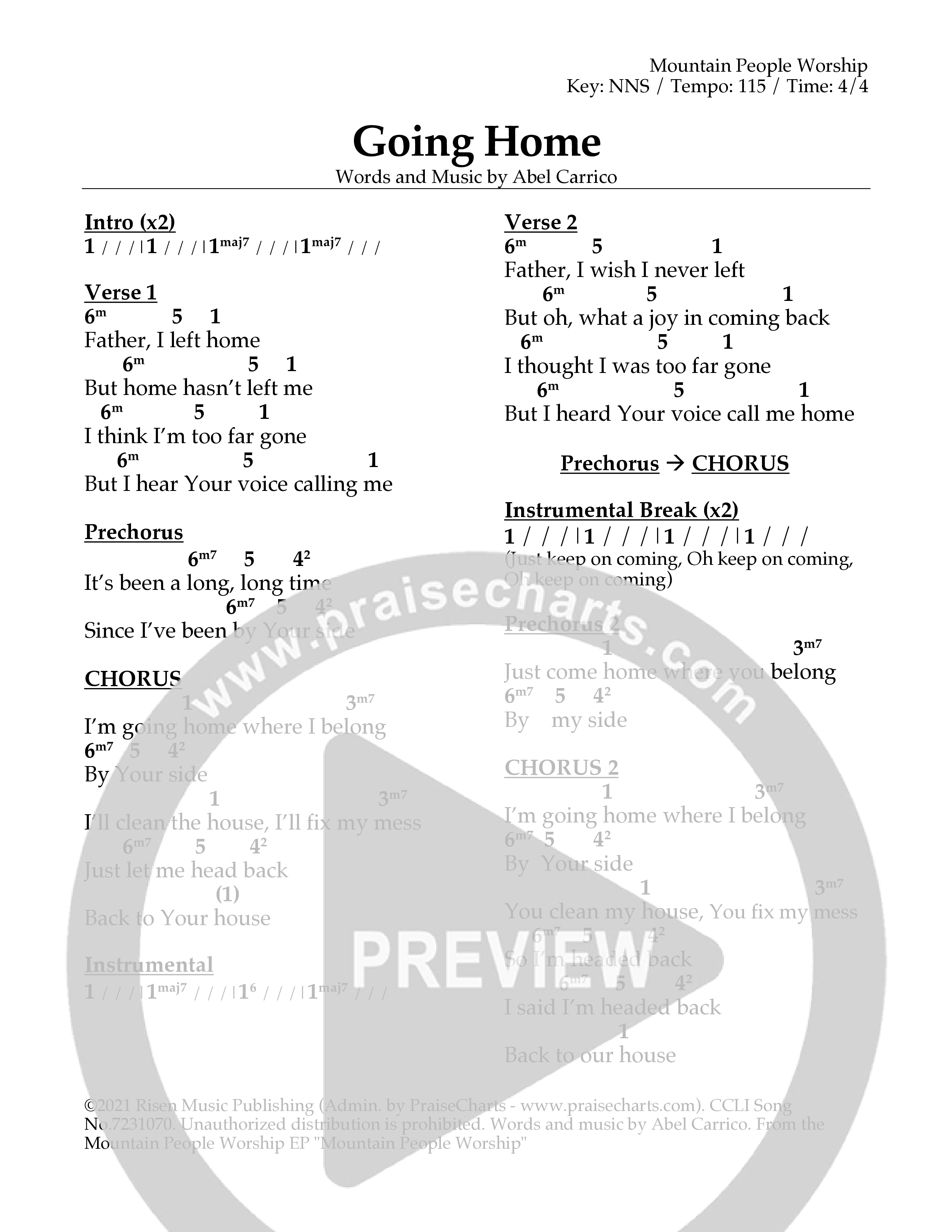 Going Home Chord Chart (Mountain People Worship)