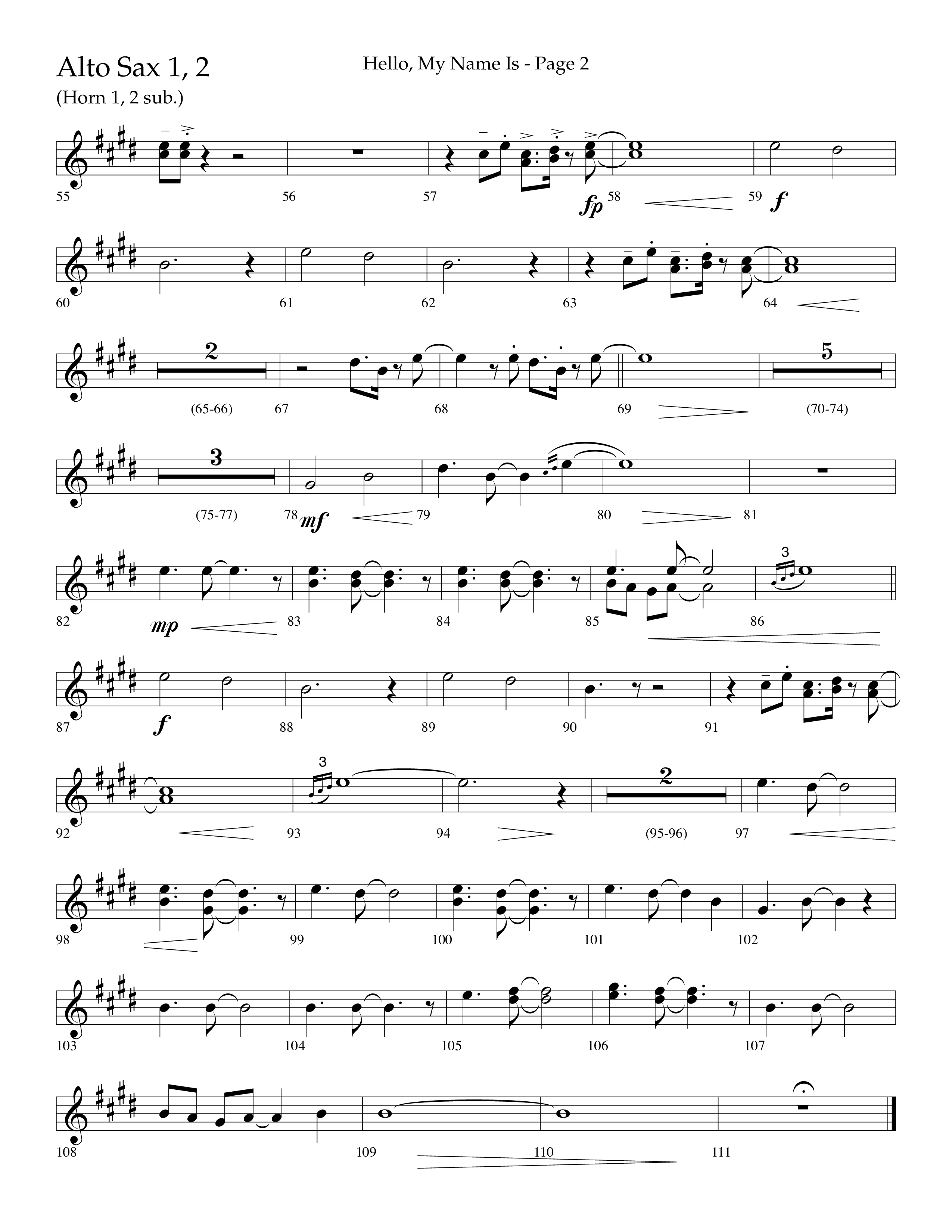 Download the Alto Sax 1,2 sheet music for Hello My Name Is (Choral Anthem SATB) by Lifeway Choral / Arr. Jim Hammerly, from the album Non-Seasonal Choral Anthems. This song was arranged by Jim Hammerly in the key of G.