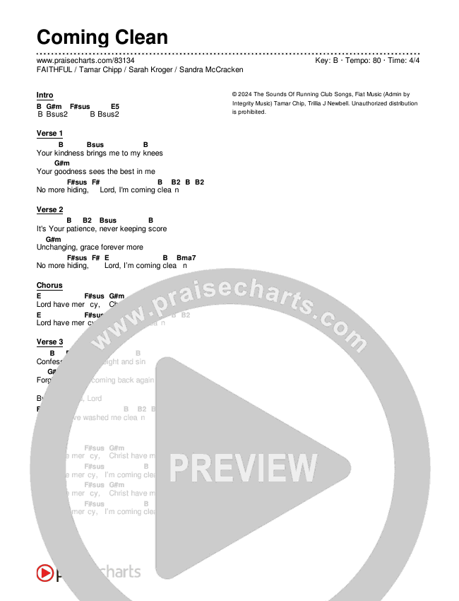 Coming Clean Chords PDF (FAITHFUL / Tamar Chipp / Sarah Kroger / Sandra McCracken)