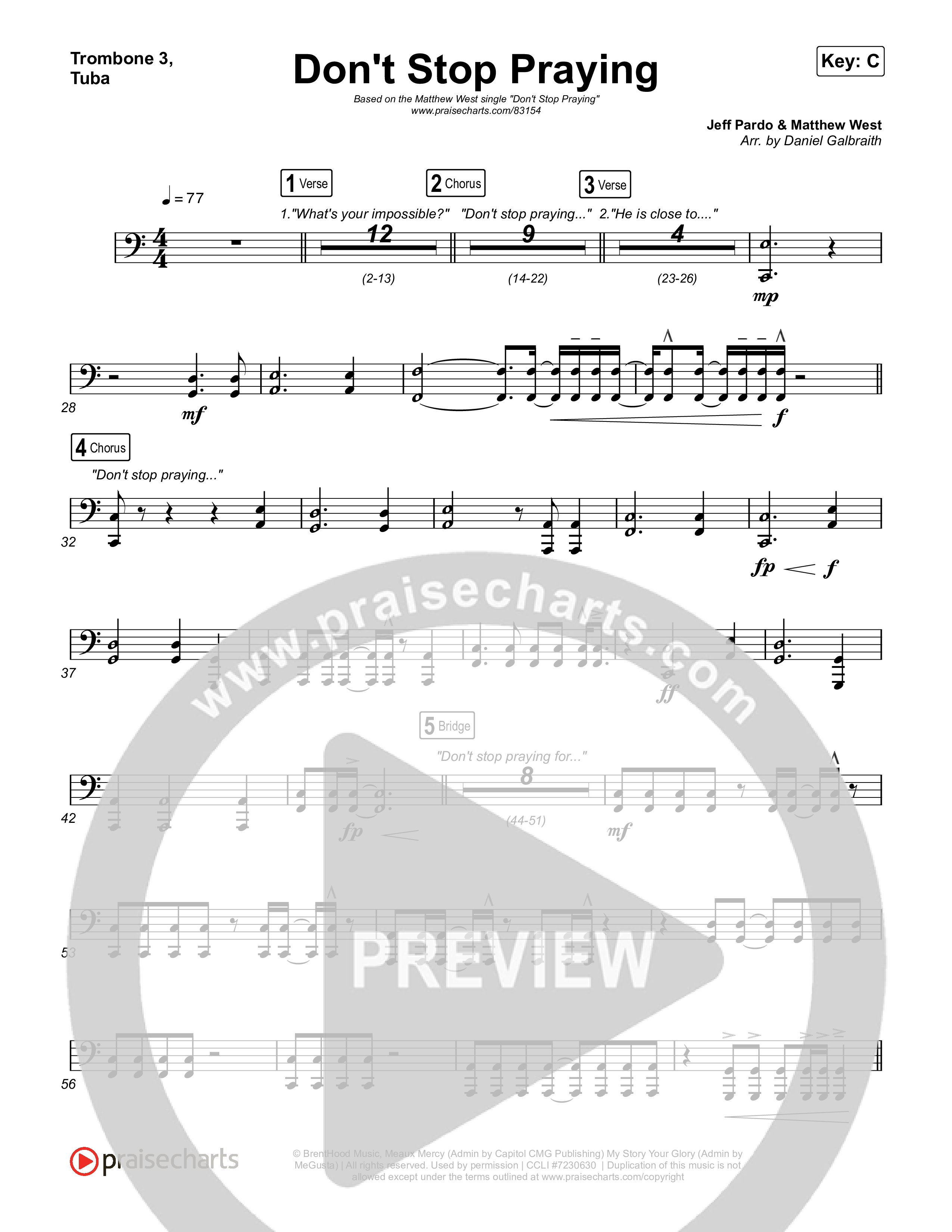 Don't Stop Praying Trombone Sheet Music PDF (Matthew West)