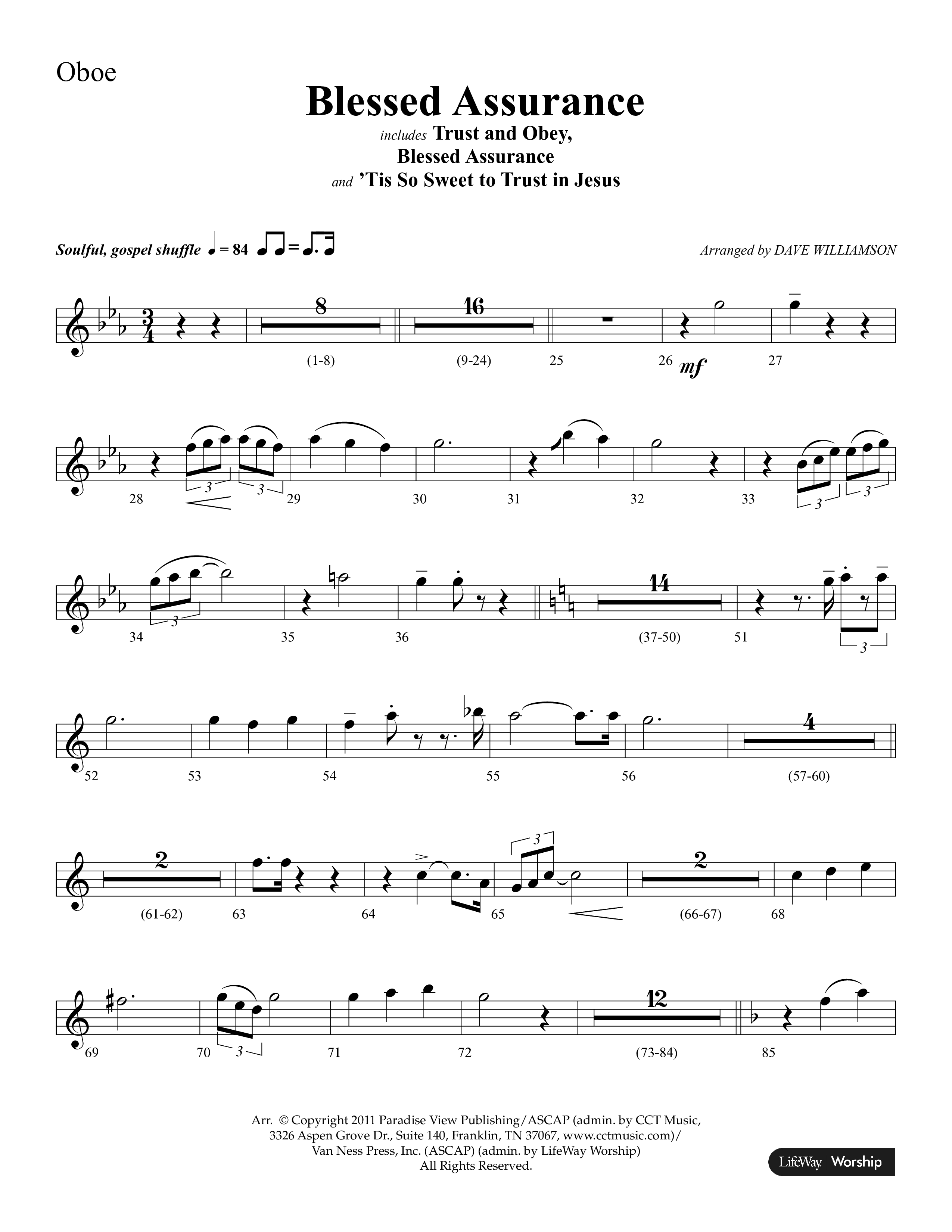 Blessed Assurance (Choral Anthem SATB) Oboe Sheet Music PDF (Lifeway Choral / Arr. Dave Williamson)