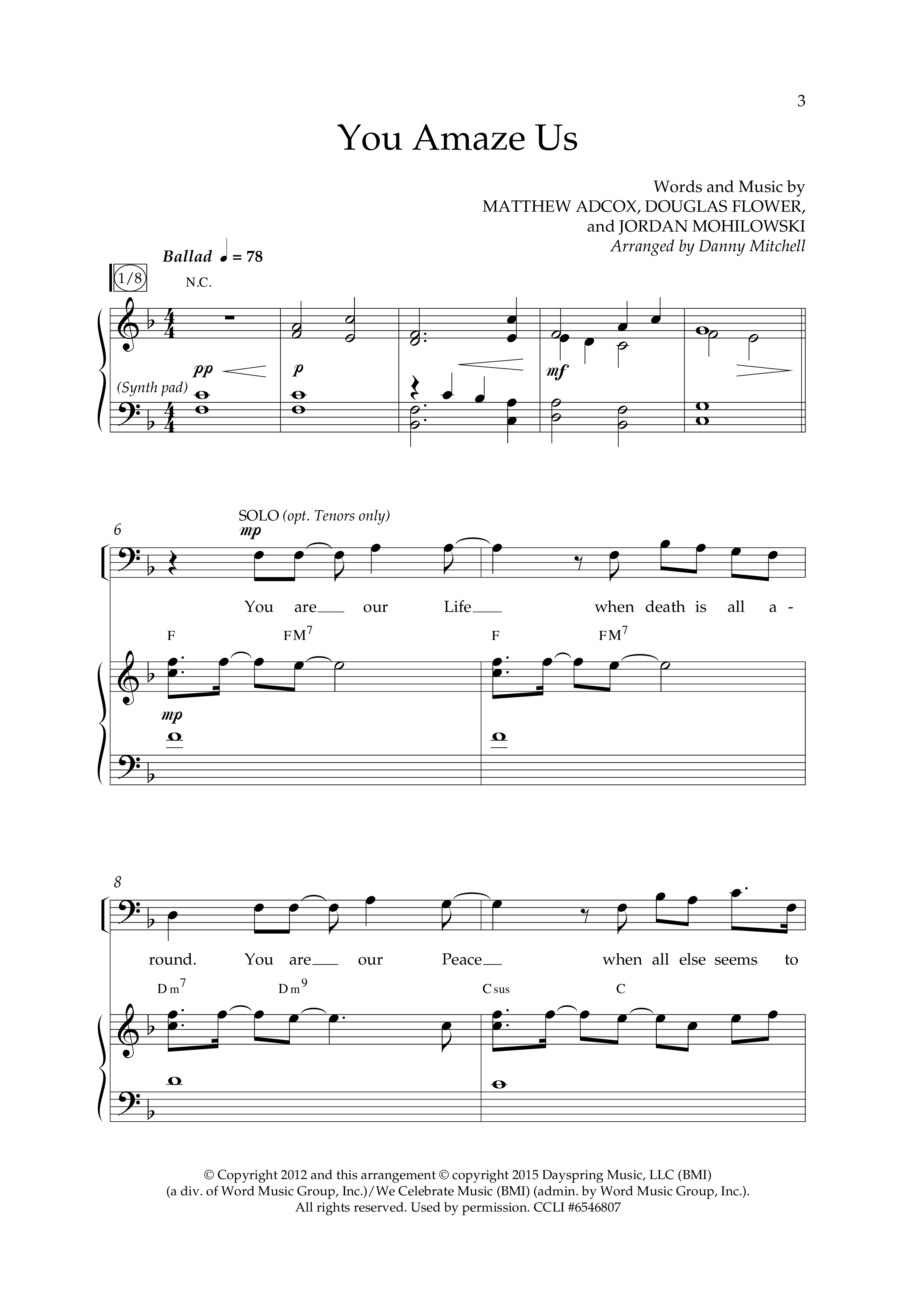 Download the PDF sheet music for You Amaze Us (Choral Anthem SATB) by Lifeway Choral / Arr. Danny Mitchell, from the album Non-Seasonal Choral Anthems. This song was arranged by Danny Mitchell in the key of F.