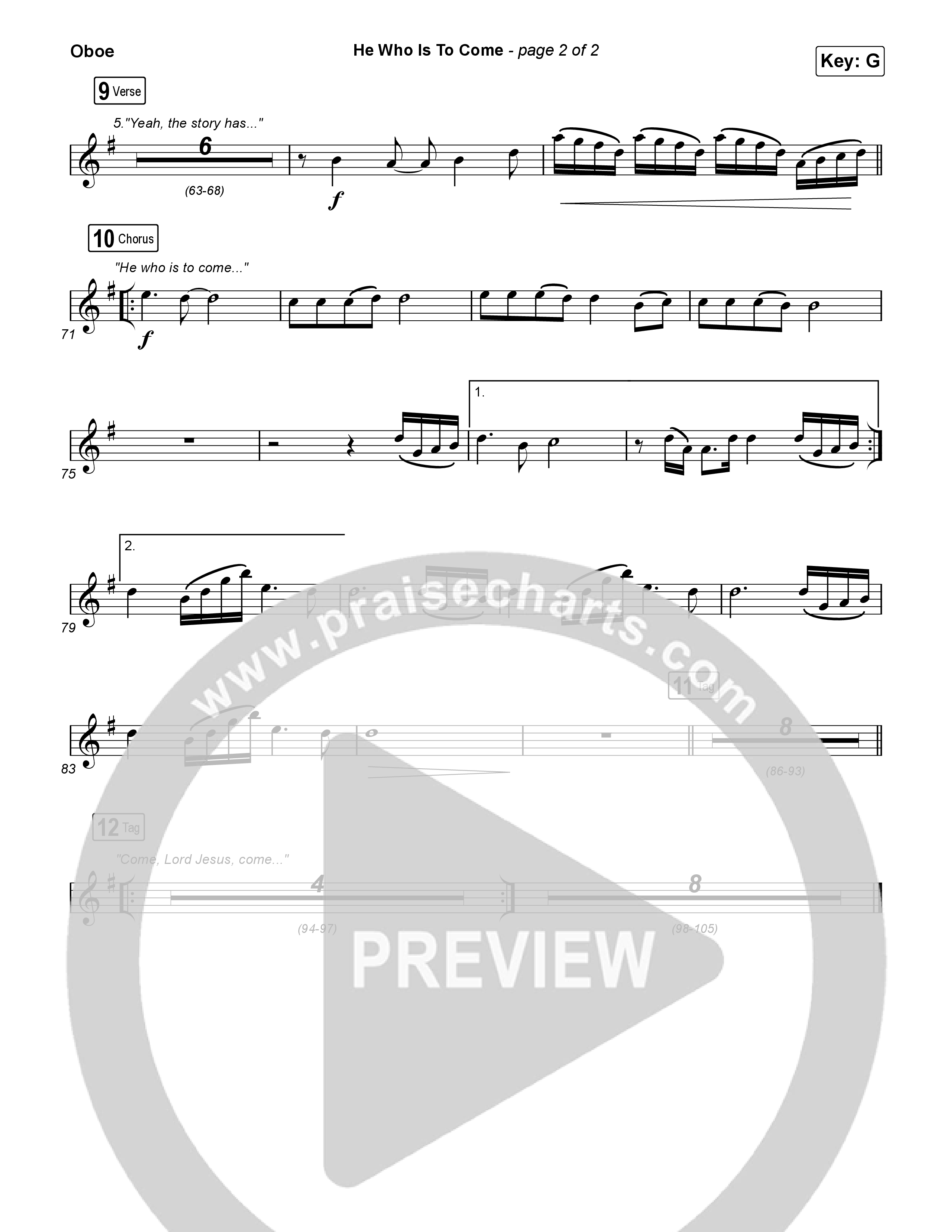 Download the Oboe sheet music for He Who Is To Come (Unison/2-Part) by Passion / Cody Carnes / Kristian Stanfill / Arr. Luke Gambill, from the album He Who Is To Come. This song was arranged by Luke Gambill / Daniel Galbraith in the key of G.