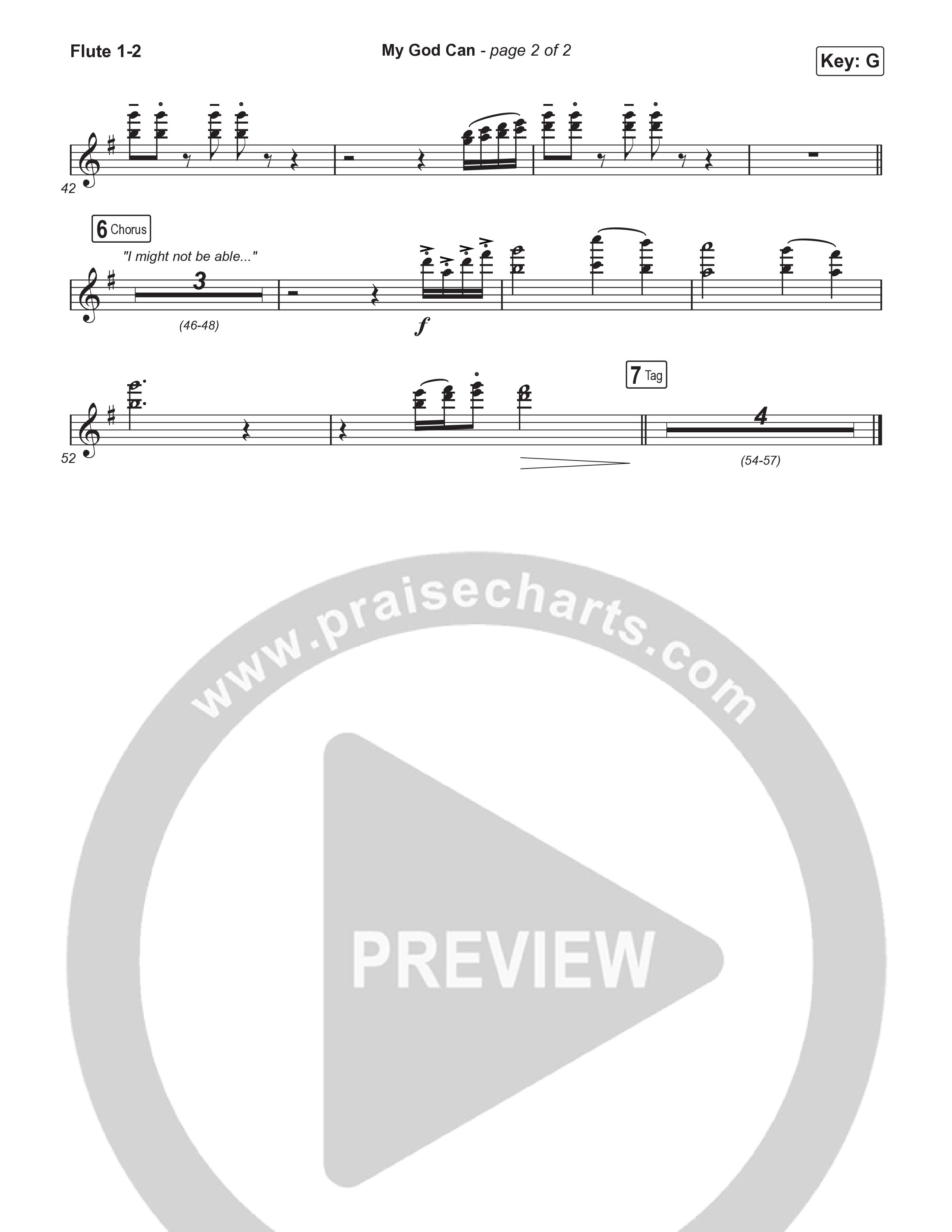 Download the Flute sheet music for My God Can (Unison/2-Part) by Katy Nichole / Naomi Raine / Arr. Luke Gambill, from the album My God Can. This song was arranged by Luke Gambill / Daniel Galbraith / Grant Wall in the key of G.