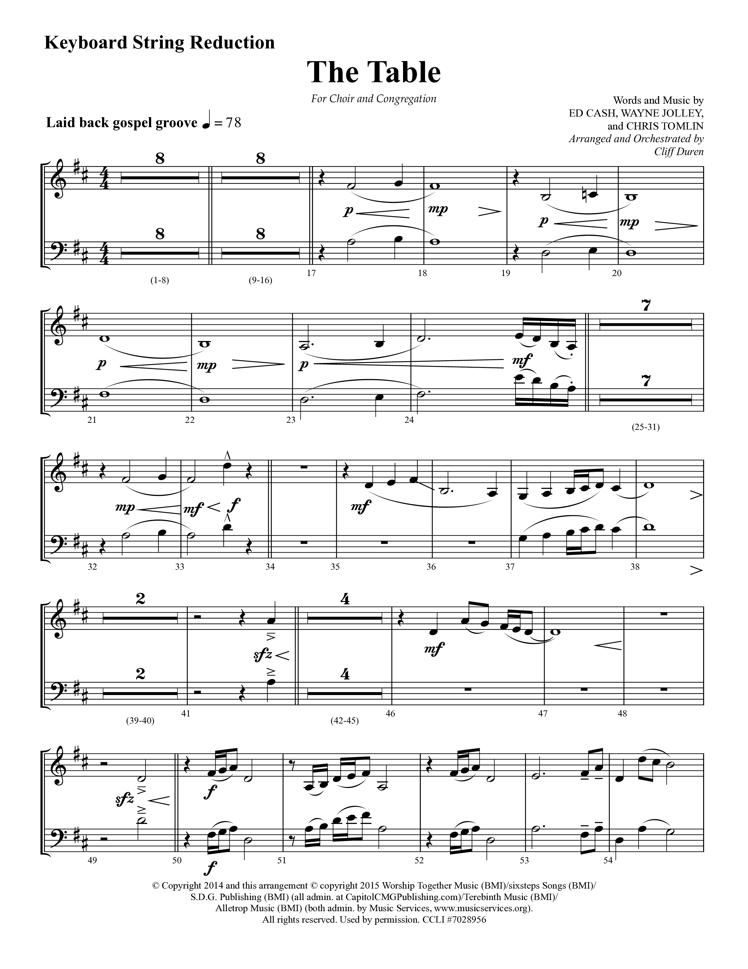 Download the String Reduction sheet music for The Table (Choral Anthem SATB) by Lifeway Choral / Arr. Cliff Duren, from the album Non-Seasonal Choral Anthems. This song was arranged by Cliff Duren in the key of D.