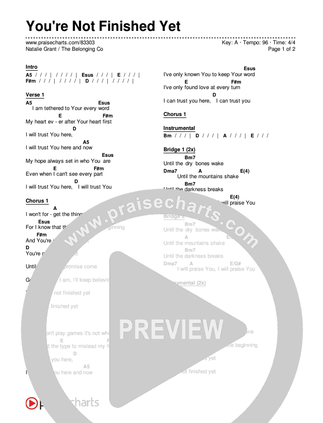 You're Not Finished Yet Chords PDF (The Belonging Co / Natalie Grant)
