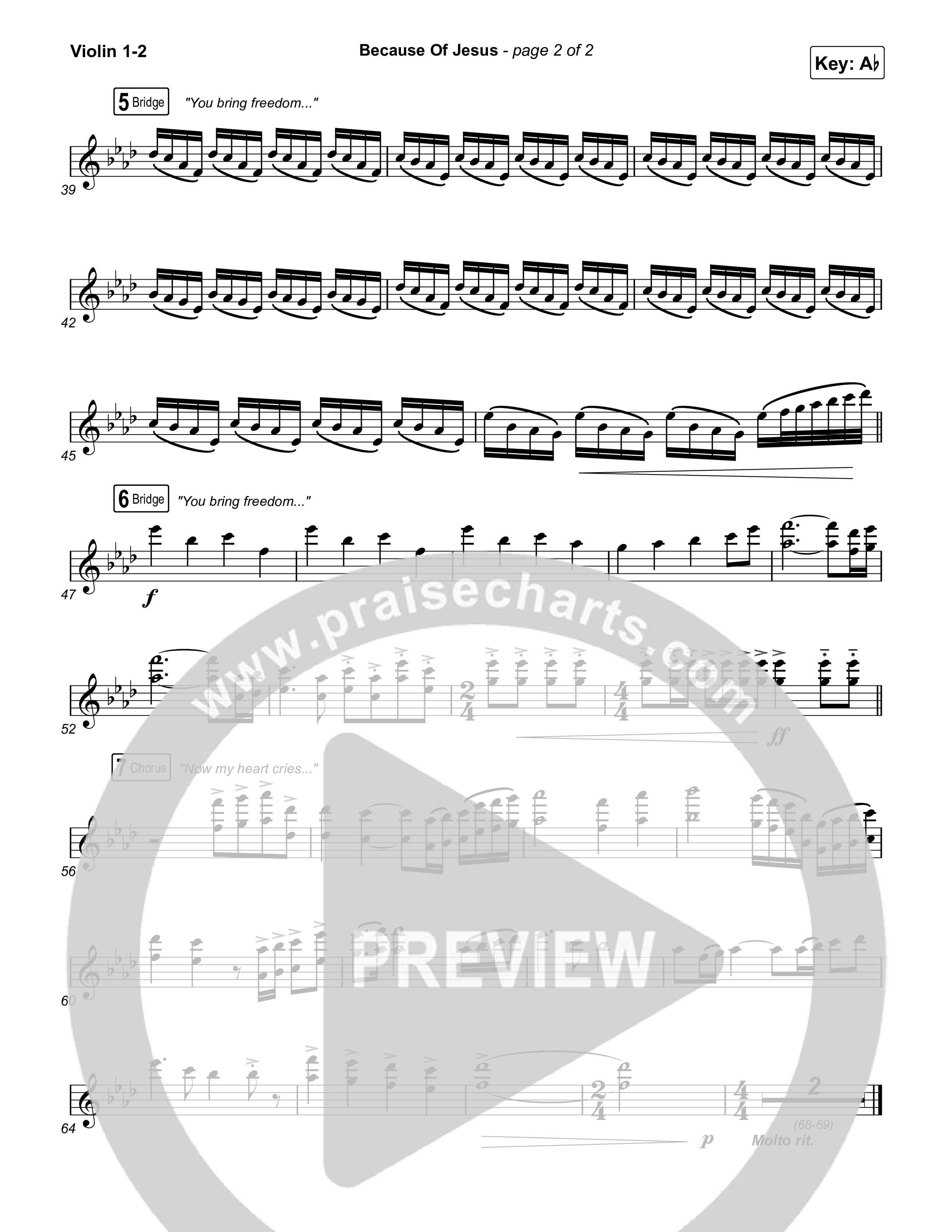 Download the Orchestration string parts for Because Of Jesus (Live) by Charity Gayle, from the album Rejoice. This song was arranged by Daniel Galbraith in the key of Ab, G.