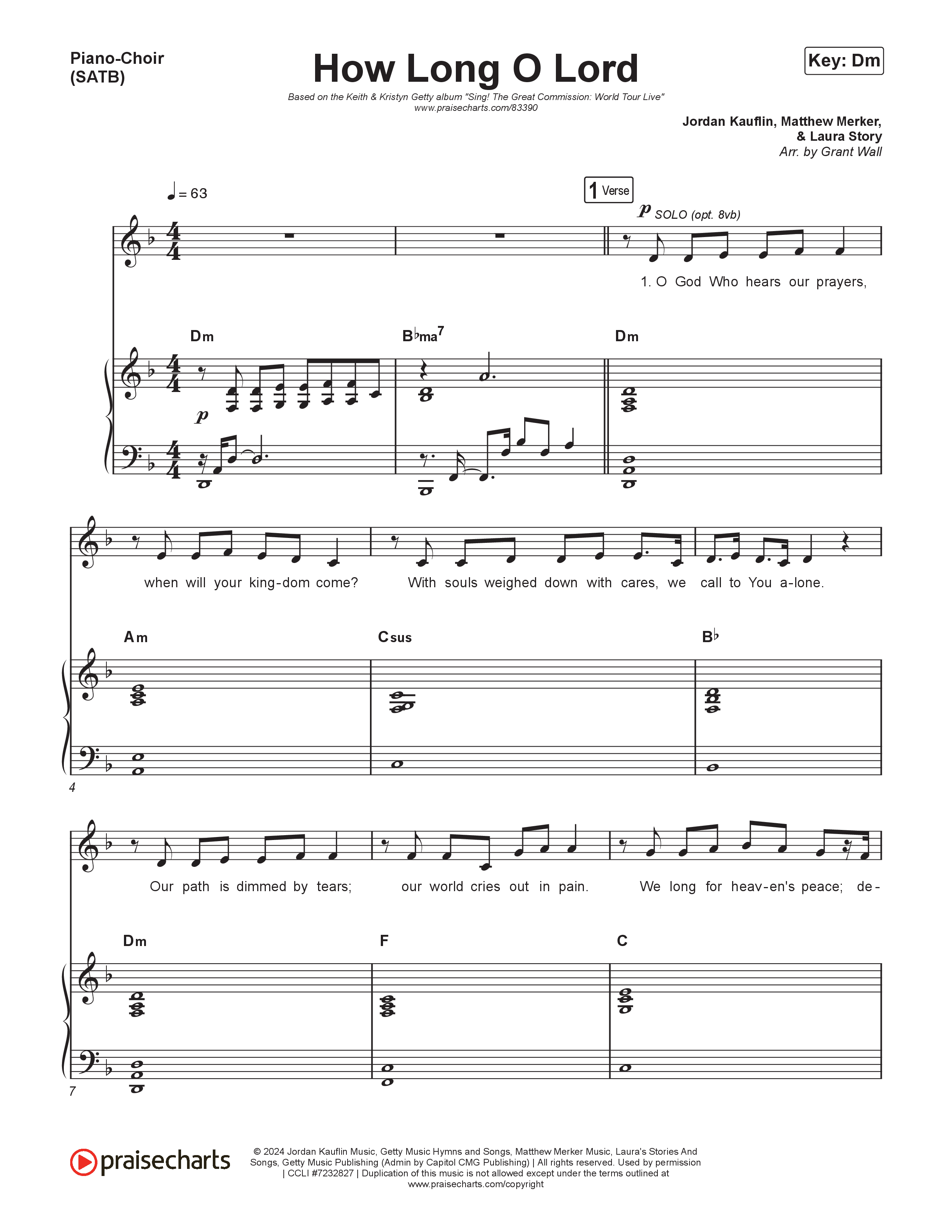 Download the sheet music for How Long O Lord by Keith & Kristyn Getty / Jordan Kauflin / Matt Merker, from the album Sing! The Great Commission: World Tour LIVE. This song was arranged by Grant Wall in the key of Dm, Em.