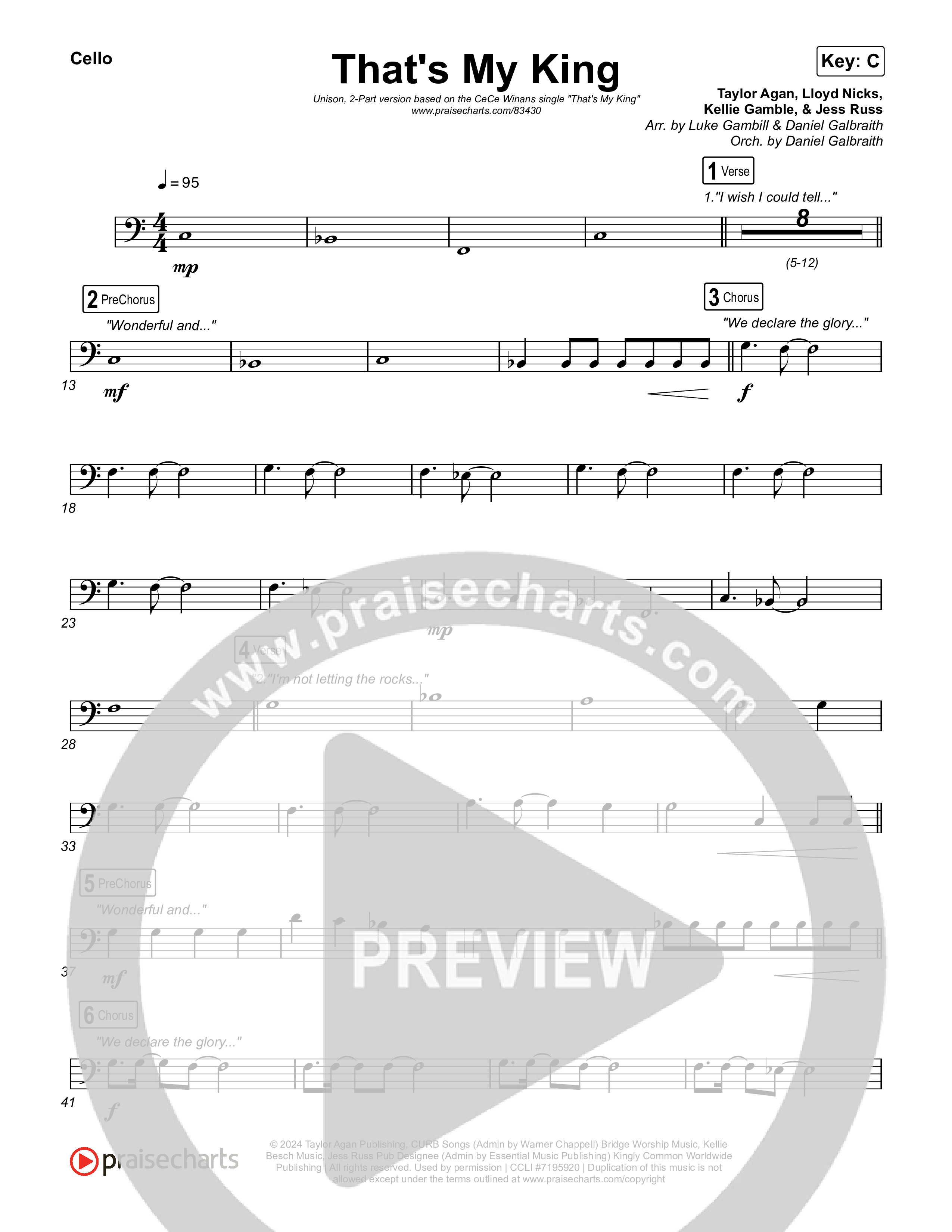 Download the Cello sheet music for That's My King (Unison/2-Part) by CeCe Winans / Arr. Luke Gambill, from the album That's My King. This song was arranged by Luke Gambill in the key of C.