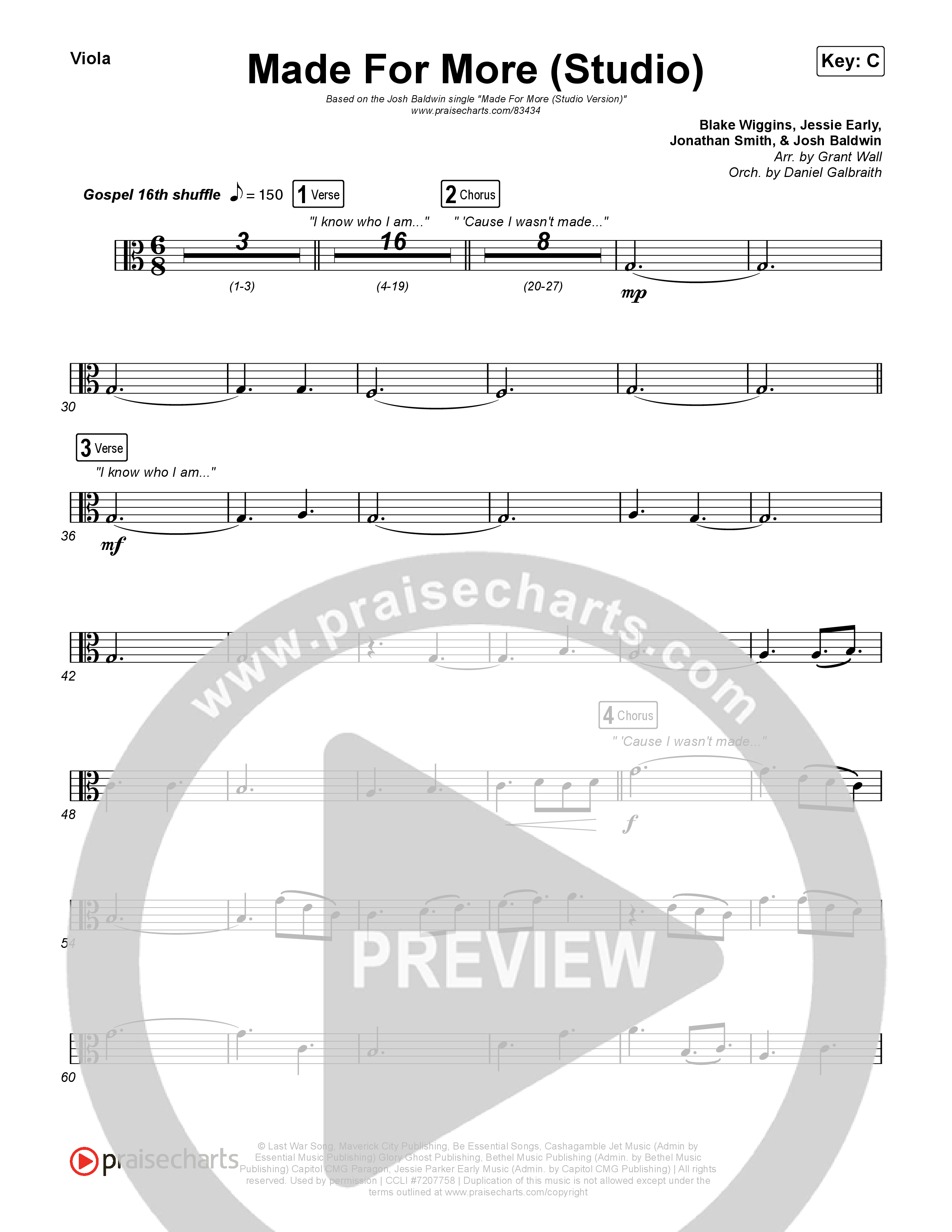 Download the Orchestration string parts for Made For More (Studio) by Josh Baldwin, from the album Made For More. This song was arranged by Grant Wall / Daniel Galbraith in the key of Bb, C.