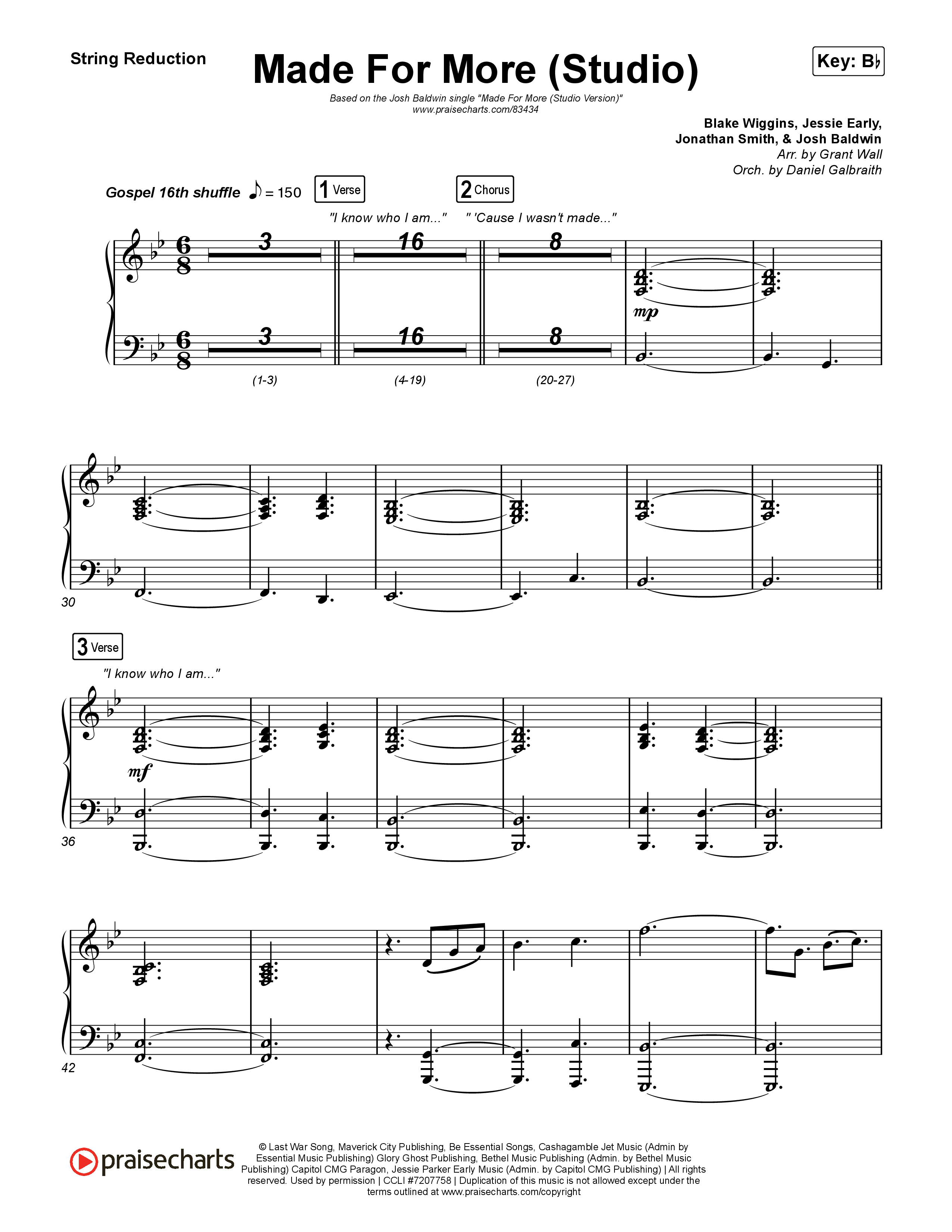 Download the String Reduction sheet music for Made For More (Studio) by Josh Baldwin, from the album Made For More. This song was arranged by Grant Wall / Daniel Galbraith in the key of Bb, C.