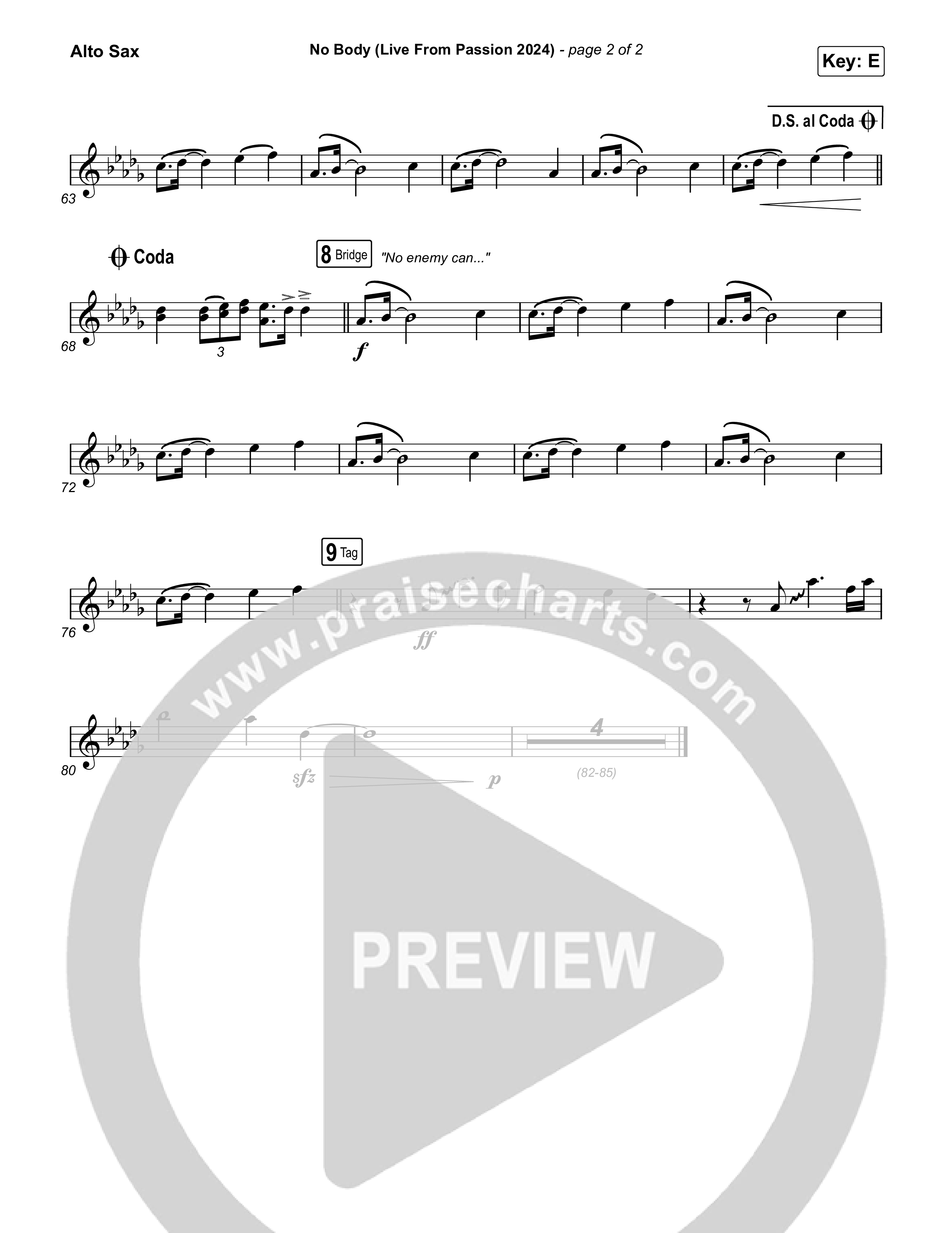 No Body (Live From Passion 2024) Alto Sax Sheet Music PDF (Passion / Chidima)