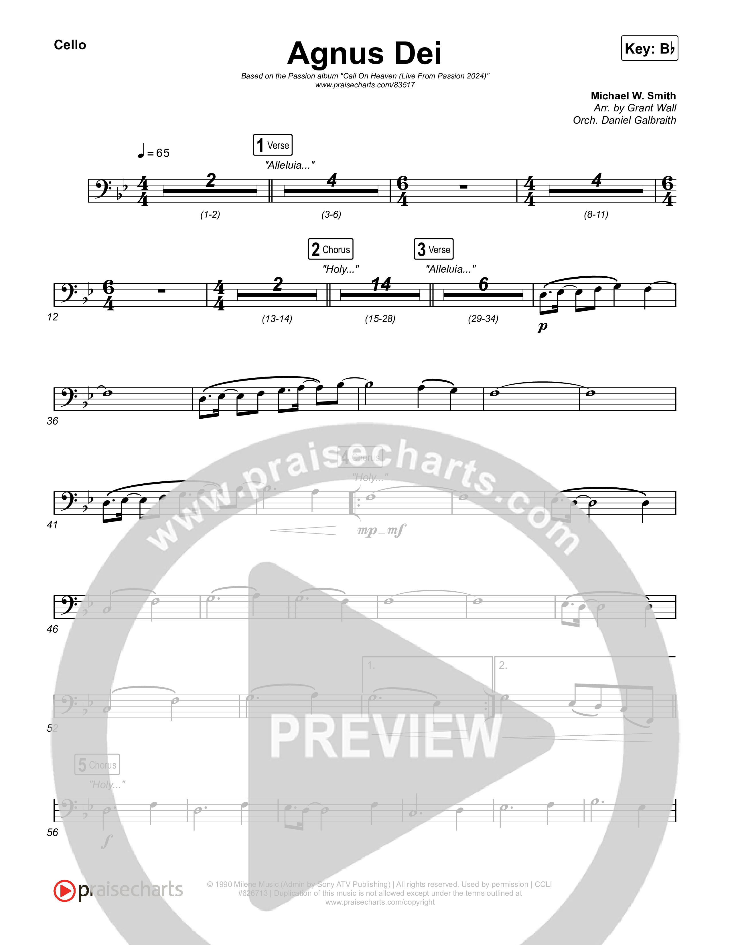Download the Cello sheet music for Agnus Dei (Live From Passion 2024) by Passion / Kristian Stanfill, from the album Call On Heaven (Live From Passion 2024). This song was arranged by Grant Wall / Daniel Galbraith in the key of A, Bb.