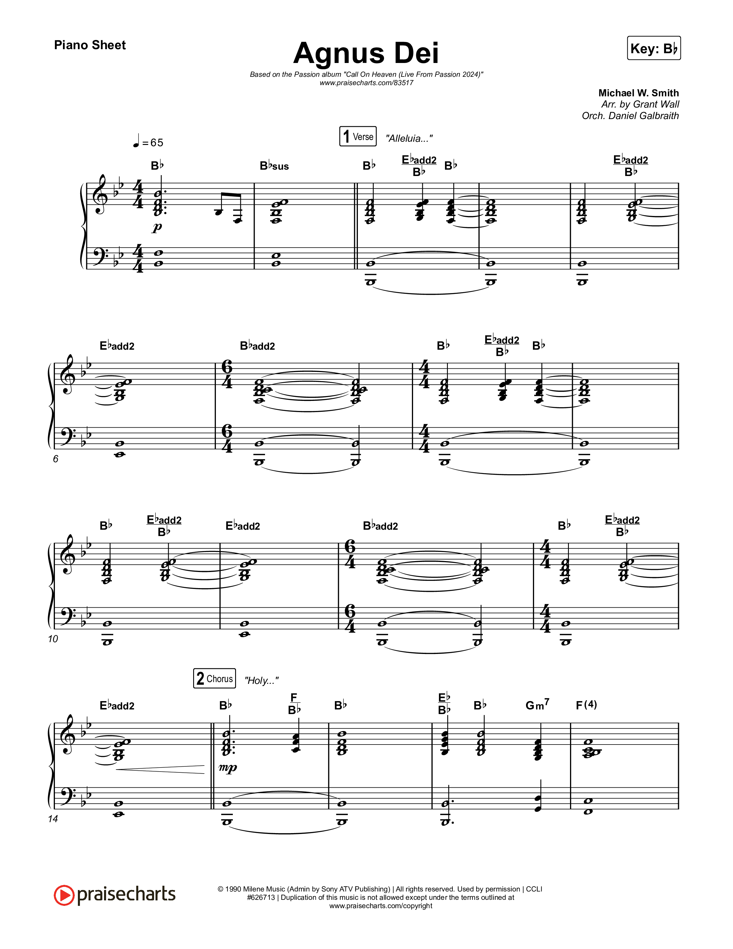 Download the piano sheet for Agnus Dei (Live From Passion 2024) by Passion / Kristian Stanfill, from the album Call On Heaven (Live From Passion 2024). This song was arranged by Grant Wall / Daniel Galbraith in the key of A, Bb.