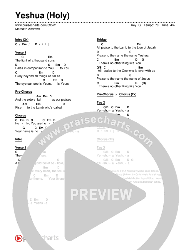 Yeshua (Holy) Chords PDF (Meredith Andrews)