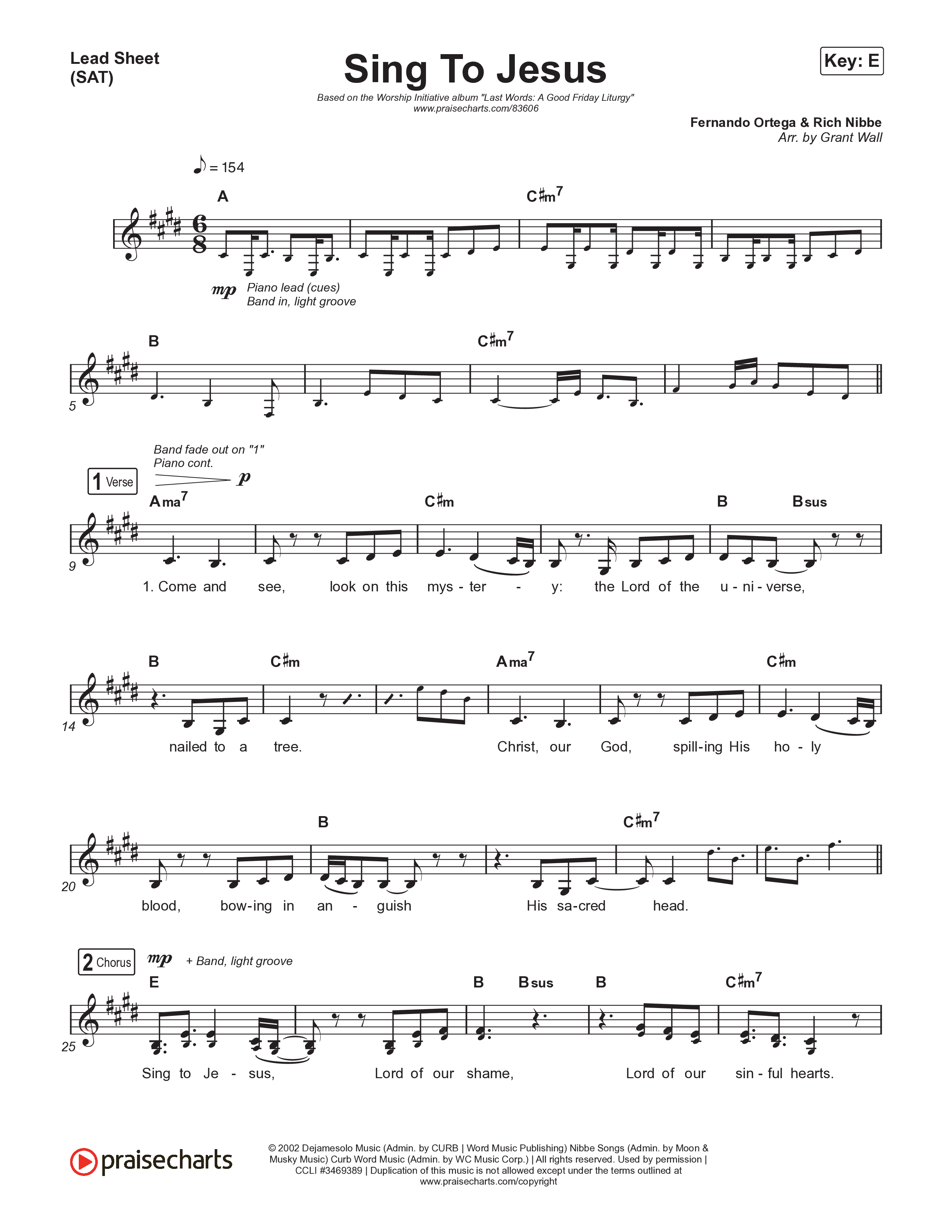 Download the sheet music for Sing To Jesus by The Worship Initiative, from the album Last Words: A Good Friday Liturgy. This song was arranged by Grant Wall in the key of E, Eb.