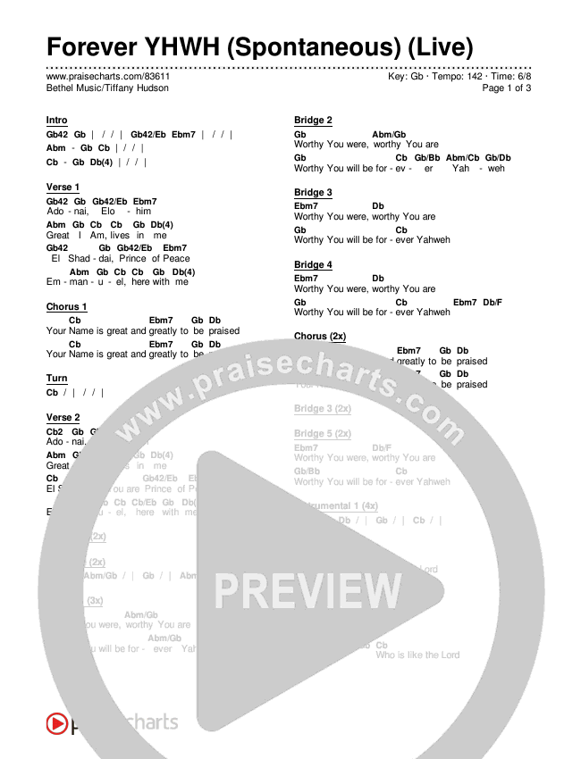 Forever YHWH (Spontaneous) (Live) Chords PDF (Bethel Music / Tiffany Hudson)