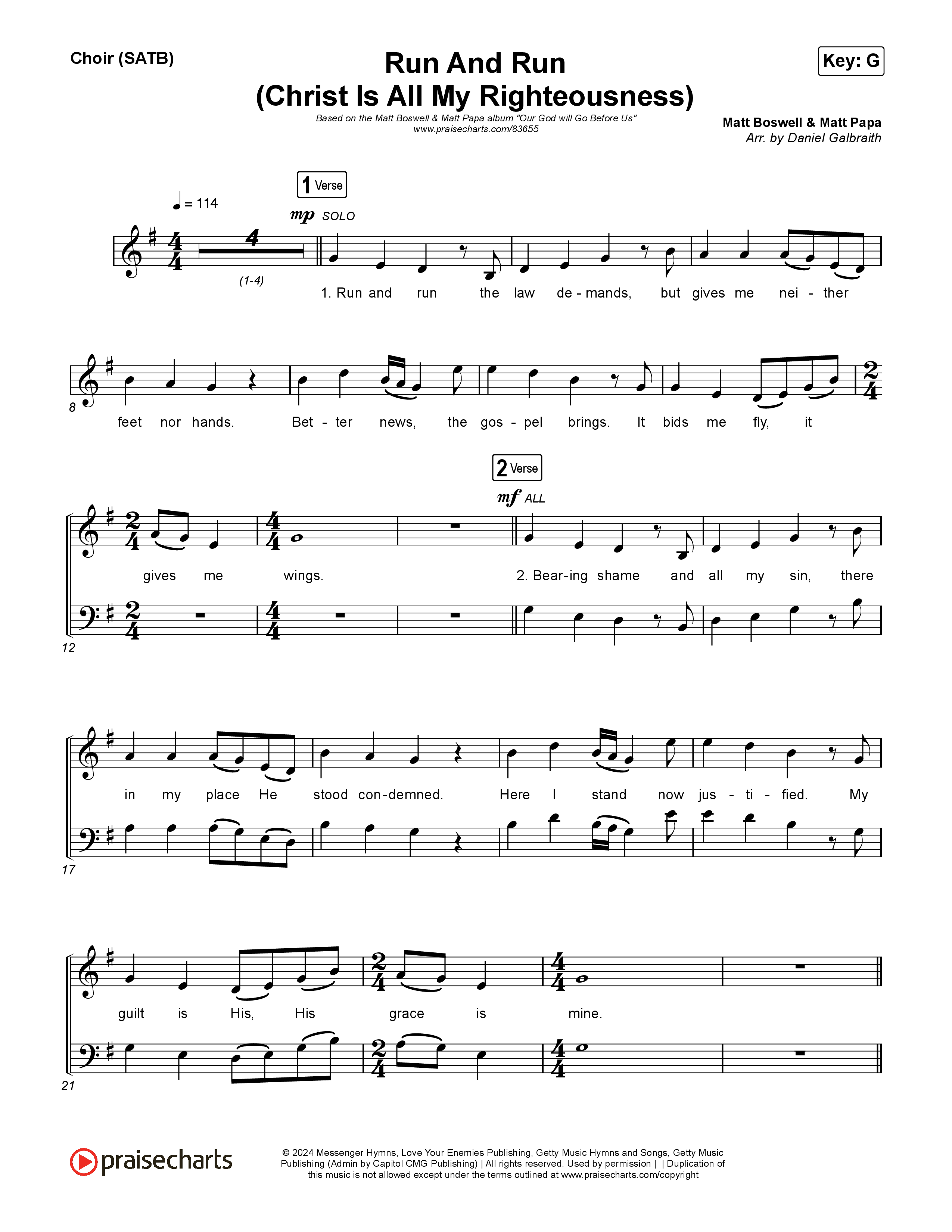 Run And Run (Christ Is All My Righteousness) Choir Sheet Music PDF (Matt Boswell / Matt Papa)