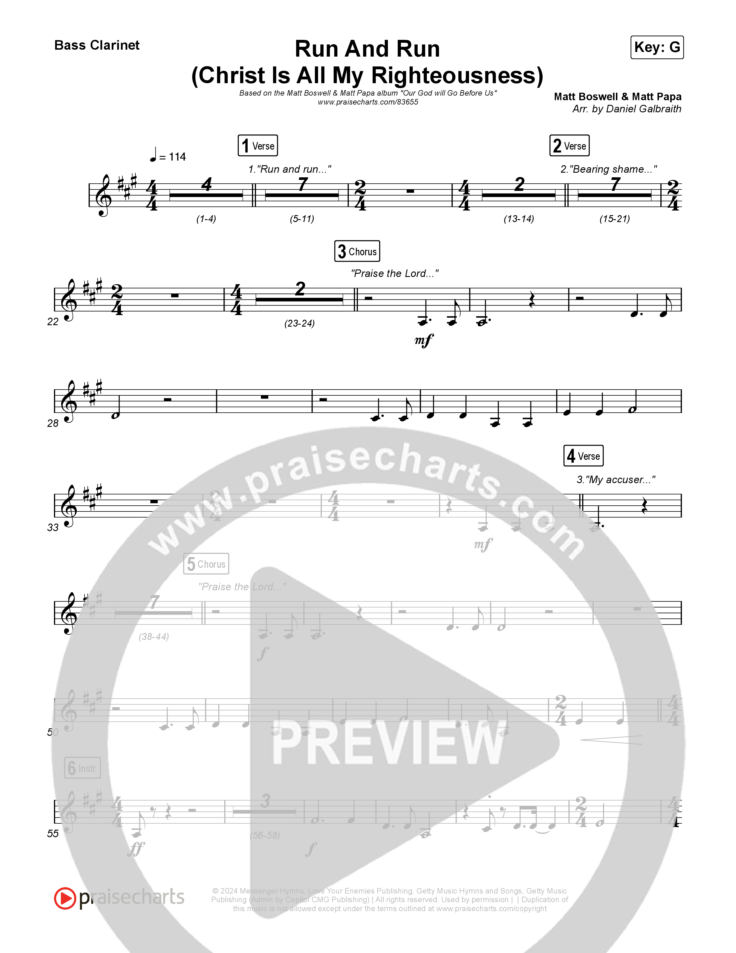 Download the Clarinet sheet music for Run And Run (Christ Is All My Righteousness) by Matt Boswell / Matt Papa, from the album Our God Will Go Before Us - The Hymns of Matt Boswell and Matt Papa Vol 3. This song was arranged by Daniel Galbraith in the key of F, G.