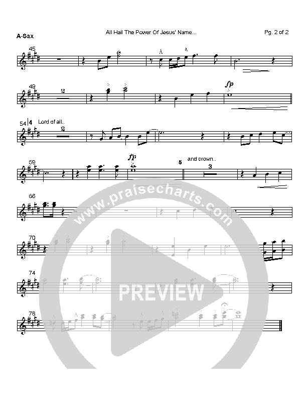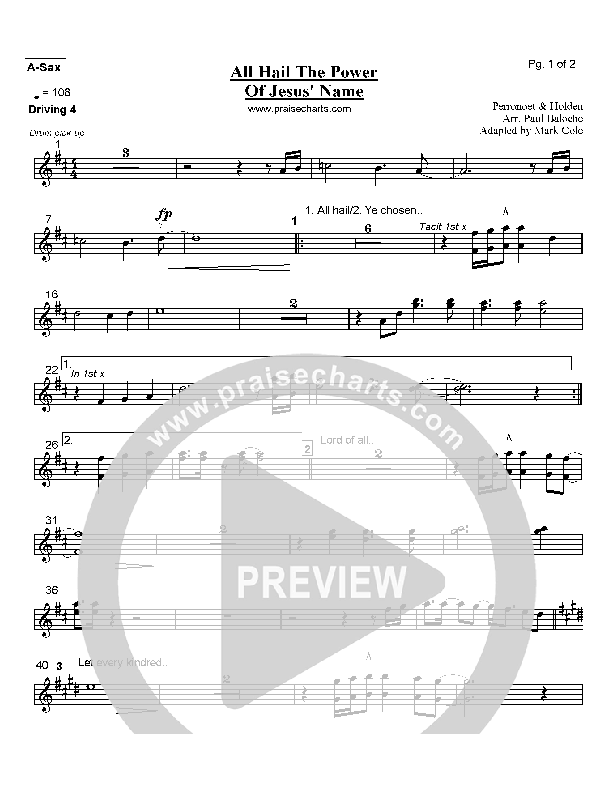 All Hail The Power Of Jesus Name Alto Sax Sheet Music PDF (Paul Baloche)