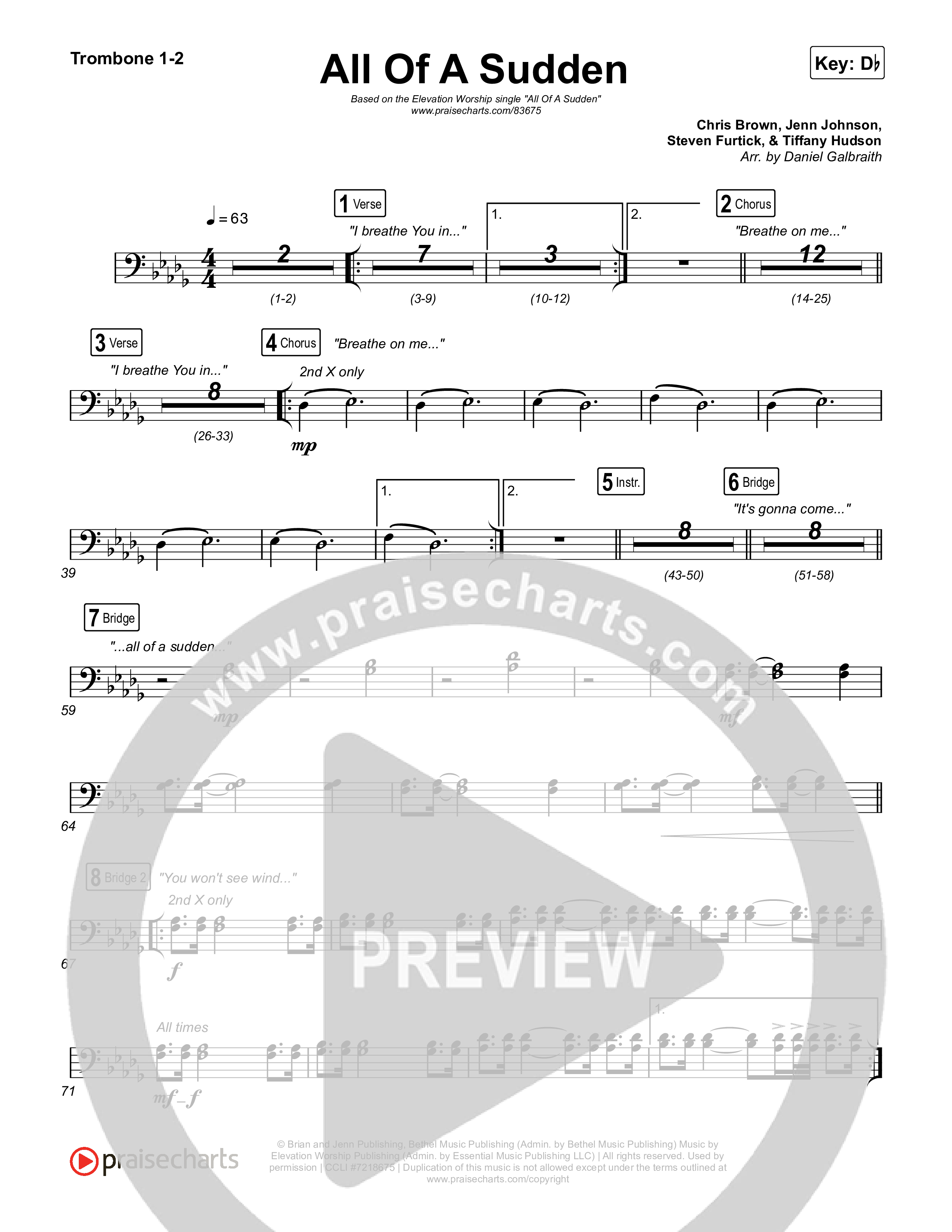 All Of A Sudden Trombone Sheet Music PDF (Elevation Worship / Tiffany Hudson)