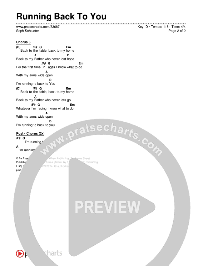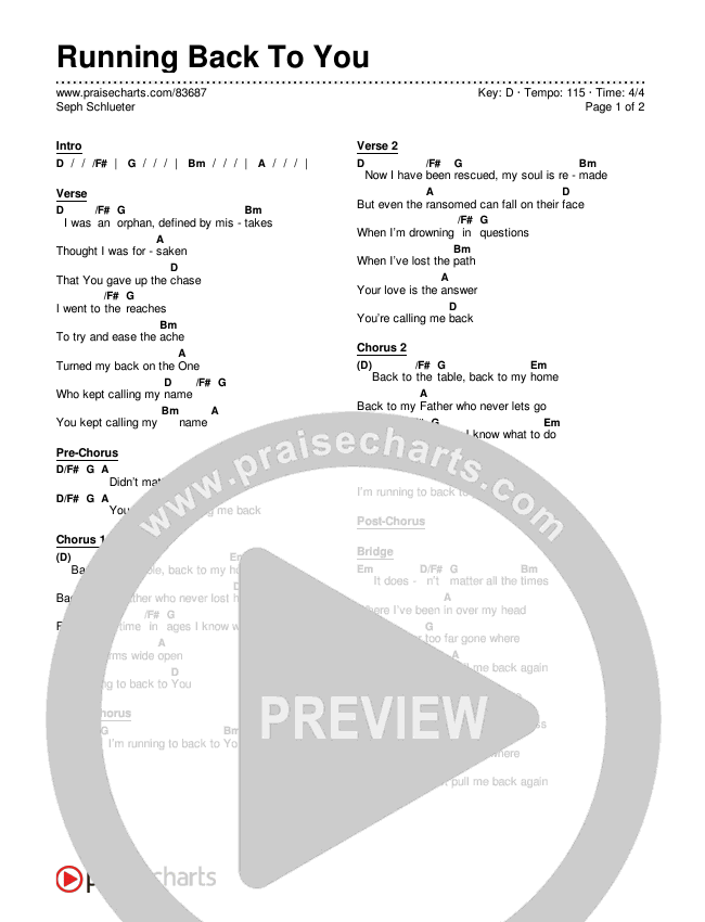 Download the PDF Chord Charts for Running Back To You by Seph Schlueter, from the album Counting My Blessings.