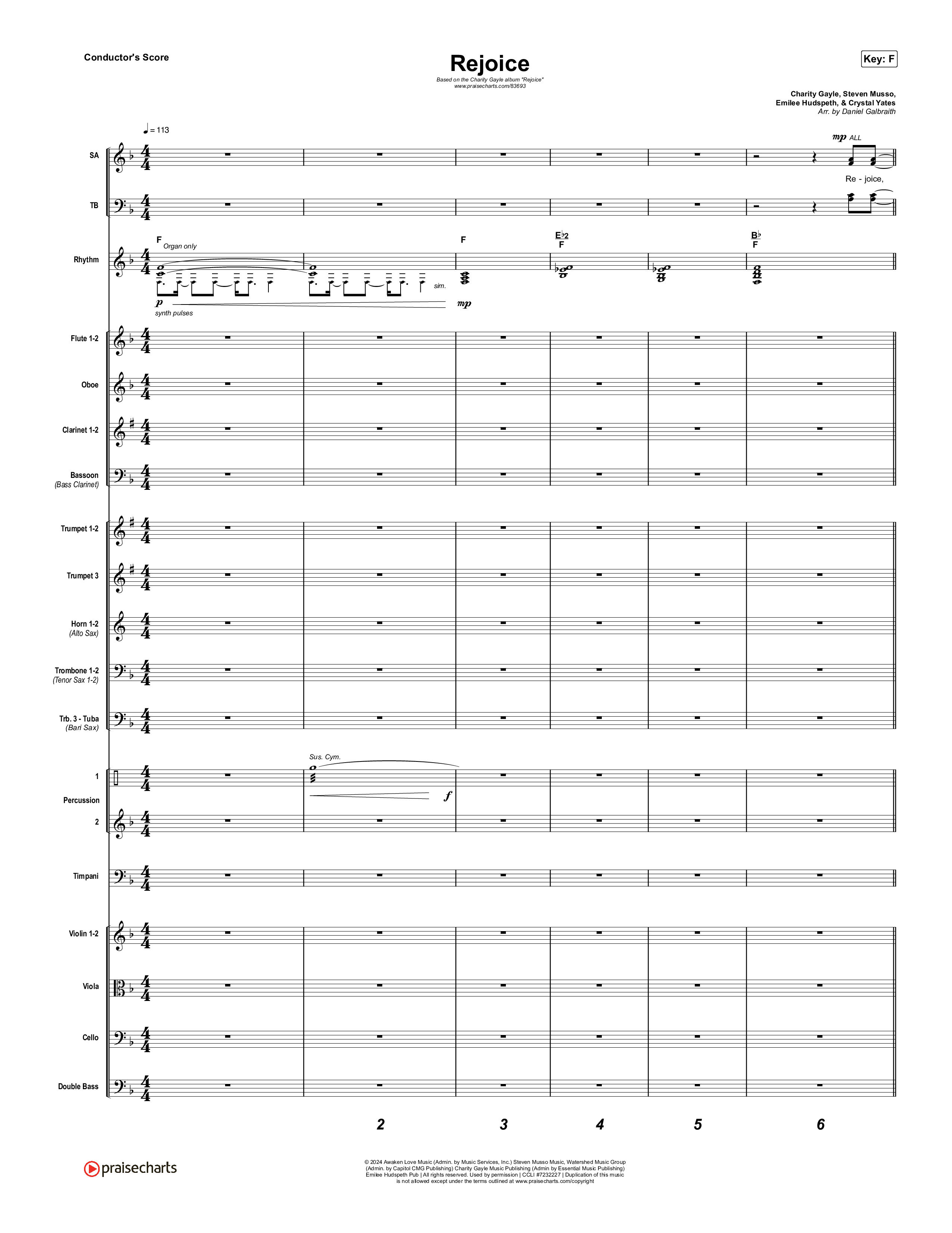 Download the Orchestration for Rejoice by Charity Gayle, from the album Rejoice. This song was arranged by Daniel Galbraith in the key of E, F.