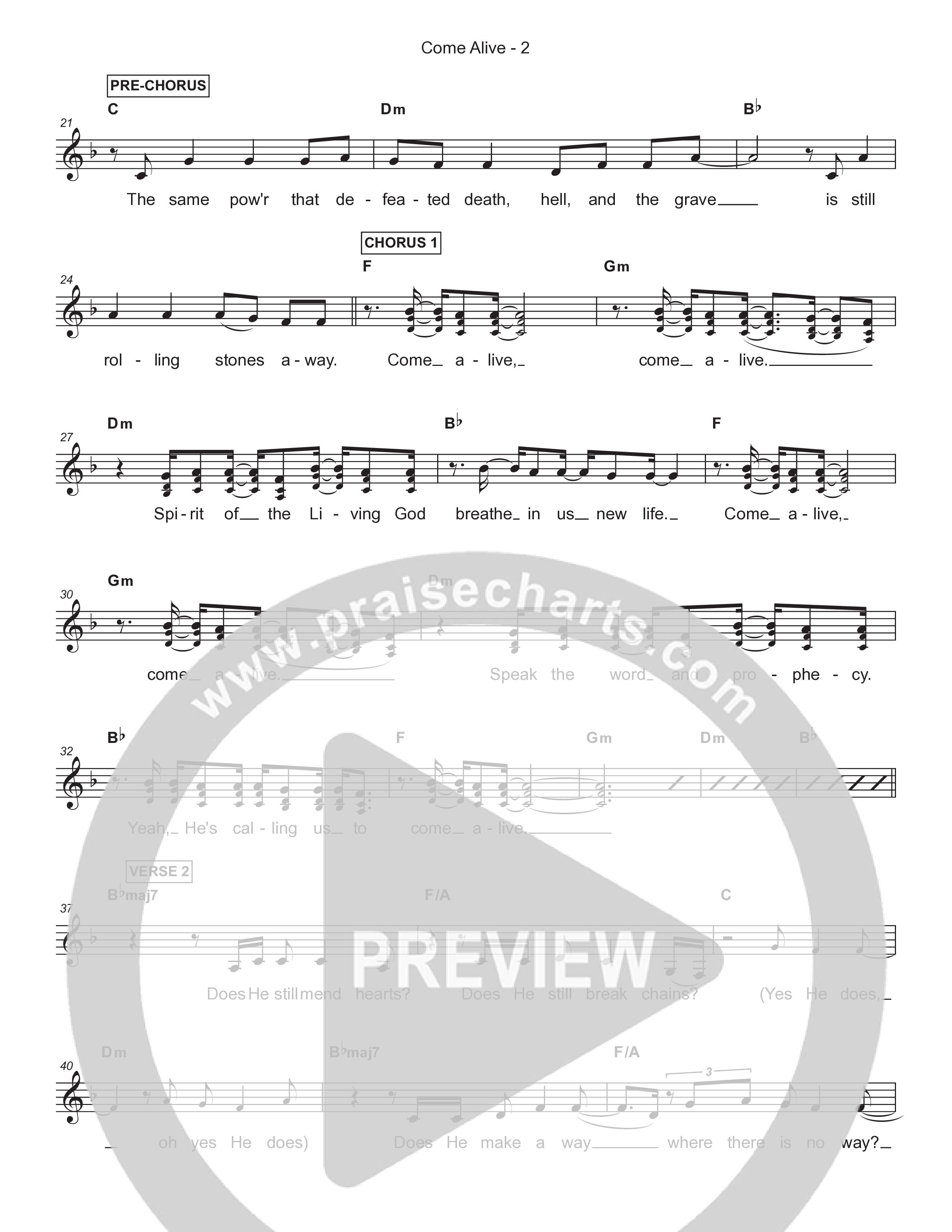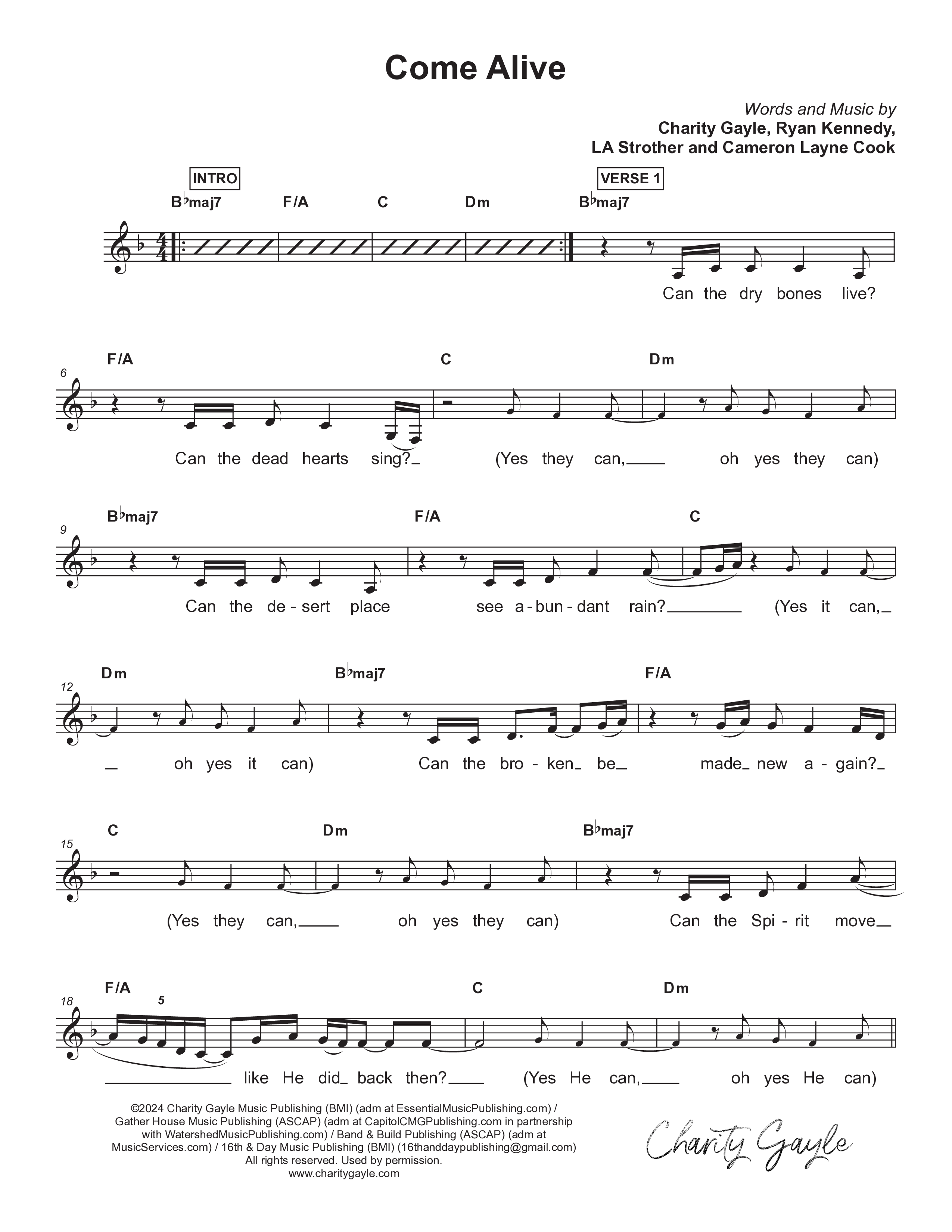 Download the sheet music for Come Alive by Charity Gayle, from the album Rejoice. This song was arranged by Daniel Galbraith in the key of F.