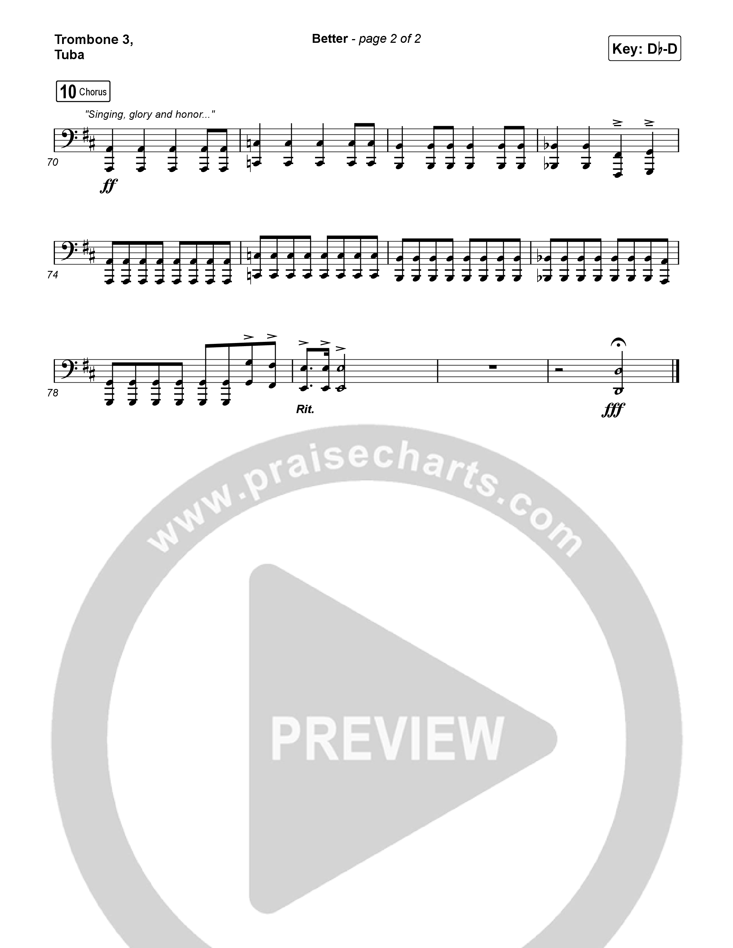 Download the Trombone 3/Tuba sheet music for Better by Charity Gayle, from the album Rejoice. This song was arranged by Grant Wall / Daniel Galbraith in the key of Db.