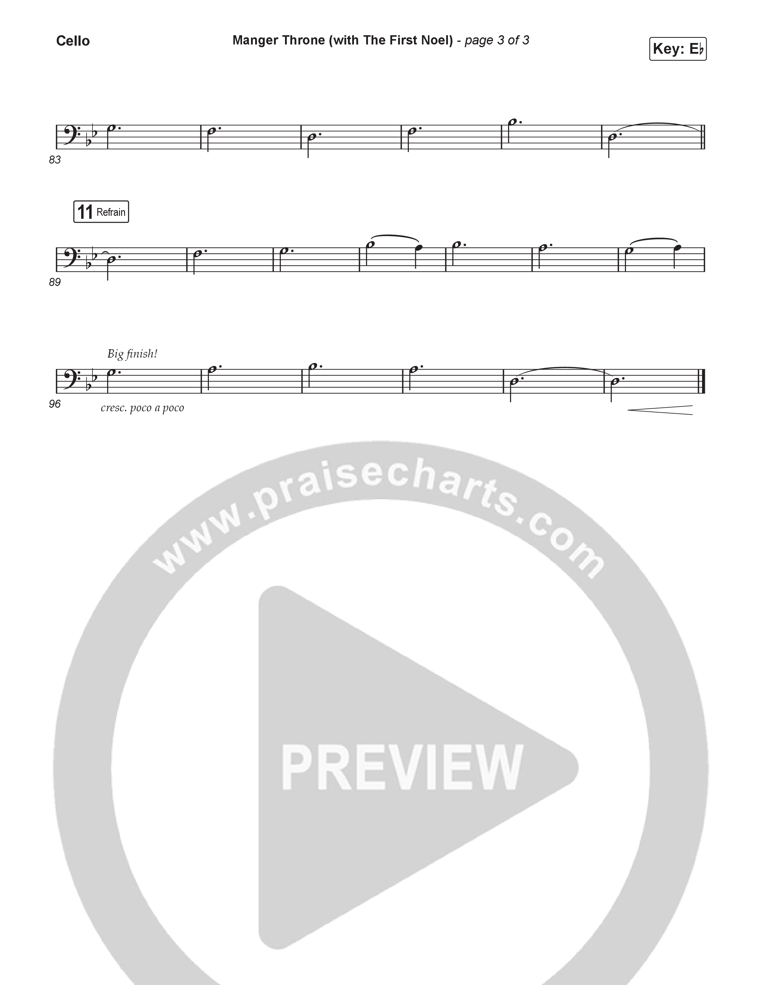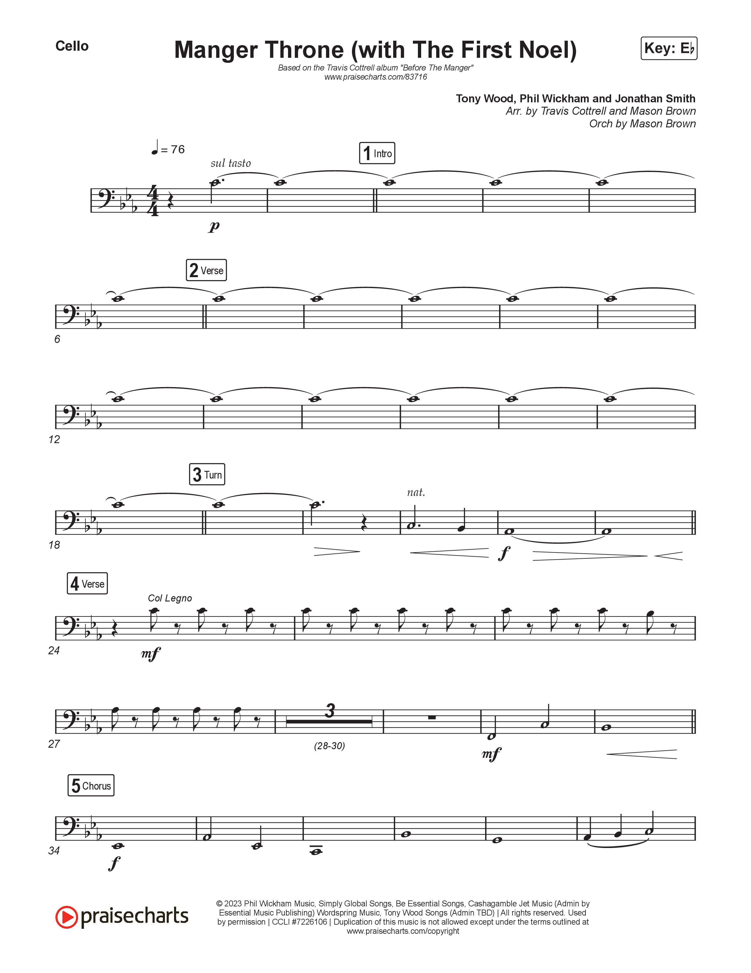 Download the Cello sheet music for Manger Throne (with The First Noel) (Choral/SATB) by Travis Cottrell / Arr. Mason Brown, from the album Before The Manger. This song was arranged by Travis Cottrell / Mason Brown in the key of Eb.