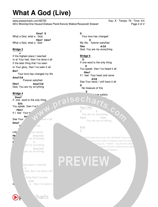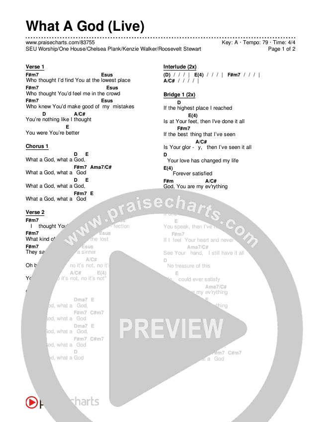 What A God (Live) Chords PDF (SEU Worship / One House / Chelsea Plank / Kenzie Walker / Roosevelt Stewart)