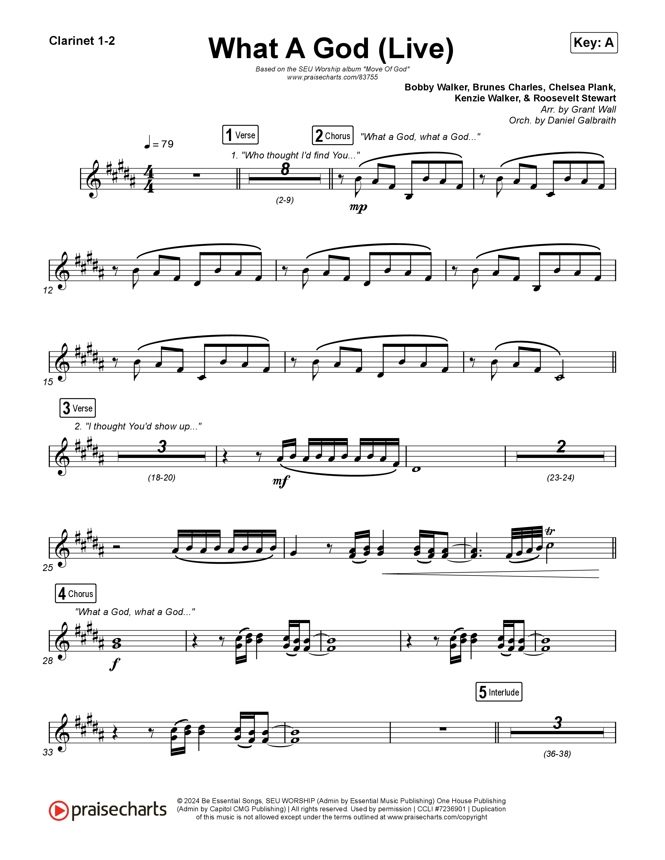 Download the Clarinet sheet music for What A God (Live) by SEU Worship / One House / Chelsea Plank / Kenzie Walker / Roosevelt Stewart, from the album Move Of God. This song was arranged by Grant Wall / Daniel Galbraith in the key of A, Ab.