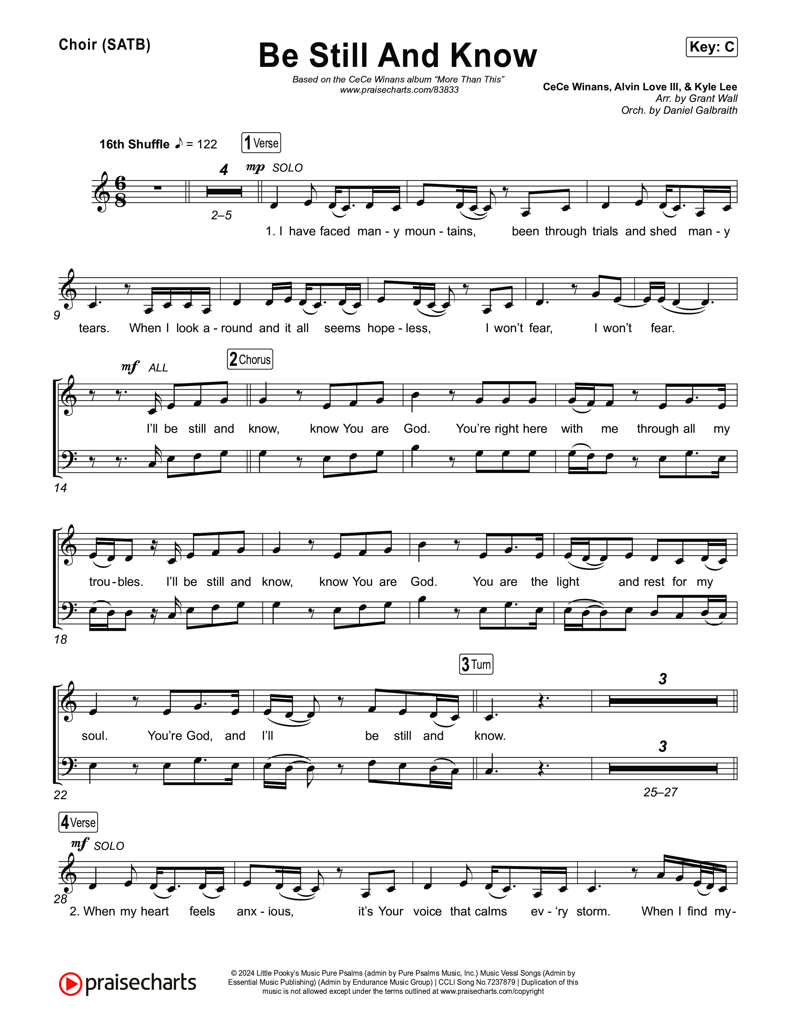 Download the Choir Sheet for Be Still And Know by CeCe Winans, from the album More Than This. This song was arranged by Grant Wall / Daniel Galbraith in the key of Bb, C.