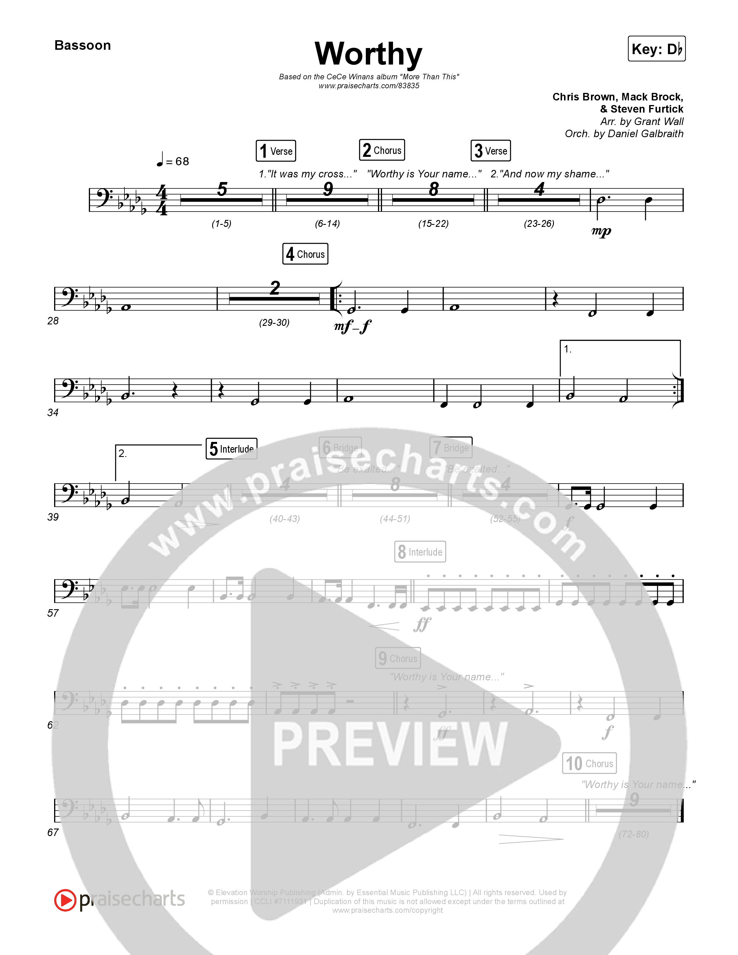 Download the Bassoon sheet music for Worthy by CeCe Winans, from the album More Than This. This song was arranged by Grant Wall / Daniel Galbraith in the key of C, Db.