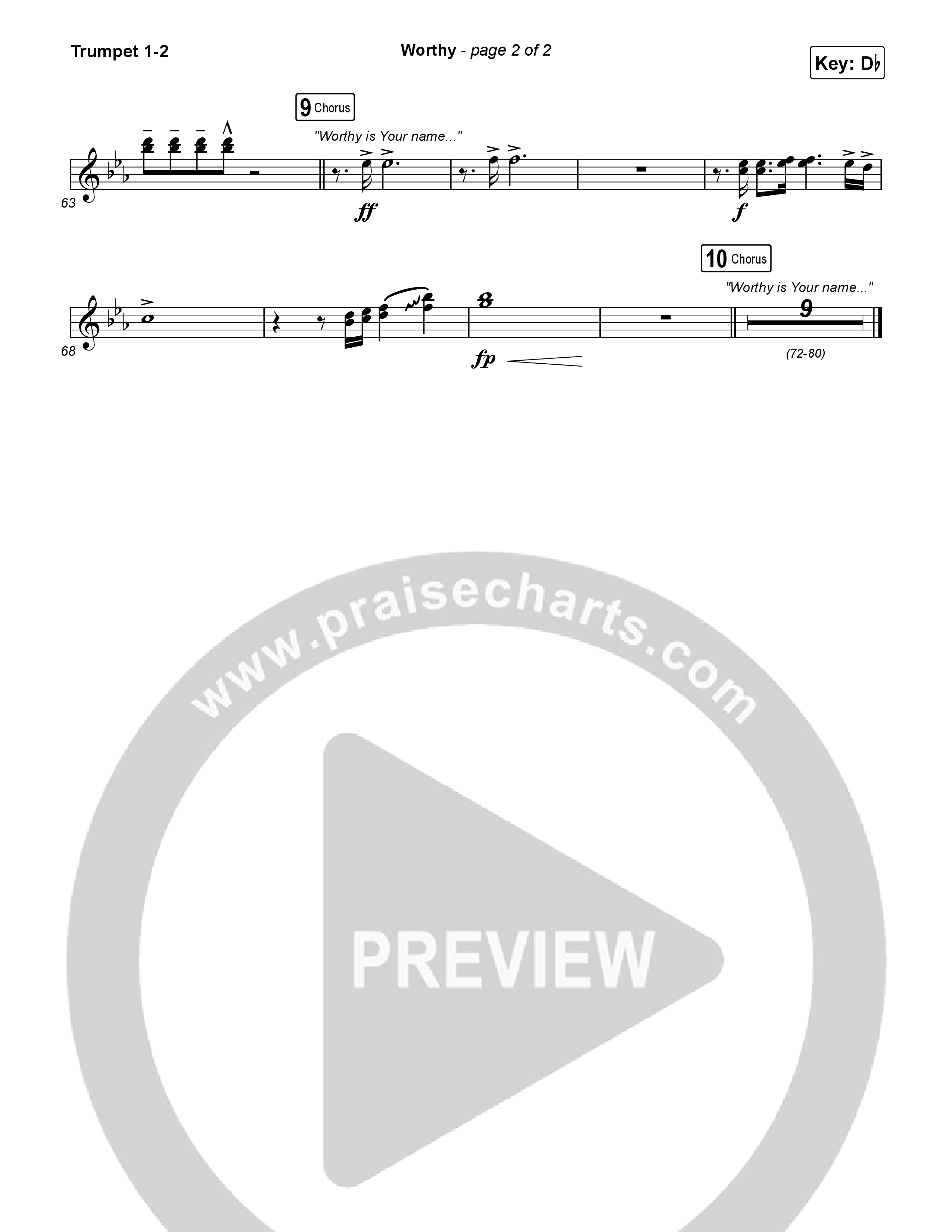 Download the trumpet sheet music for Worthy by CeCe Winans, from the album More Than This. This song was arranged by Grant Wall / Daniel Galbraith in the key of C, Db.