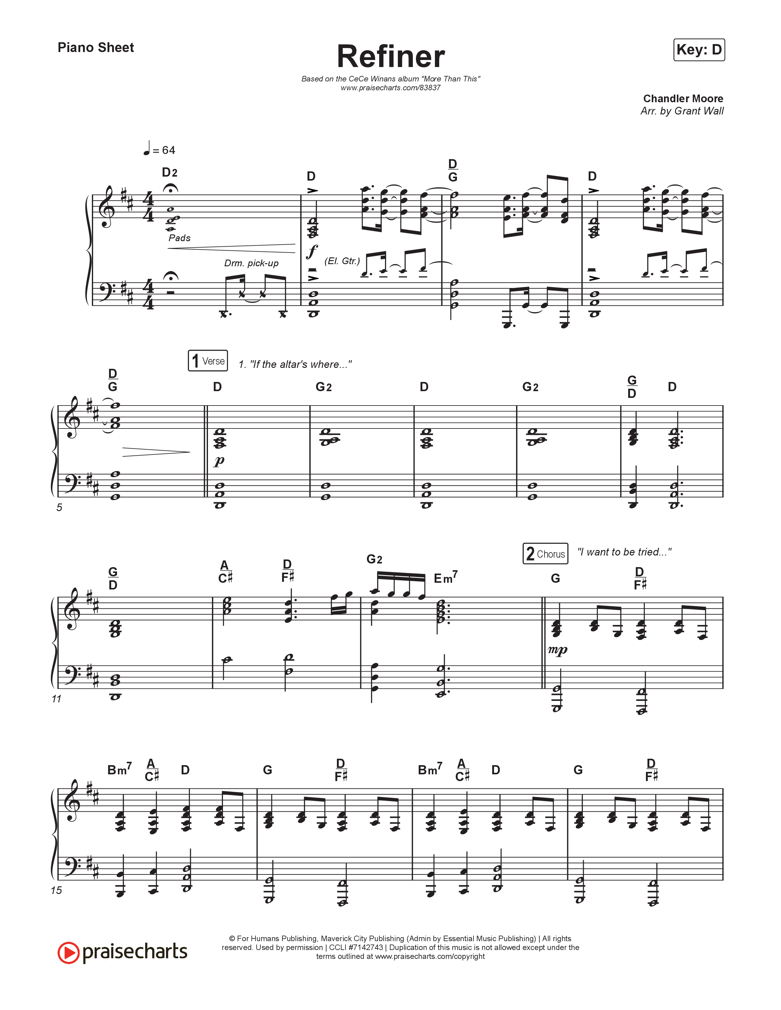 Download the piano sheet for Refiner by CeCe Winans, from the album More Than This. This song was arranged by Grant Wall in the key of D, Eb.