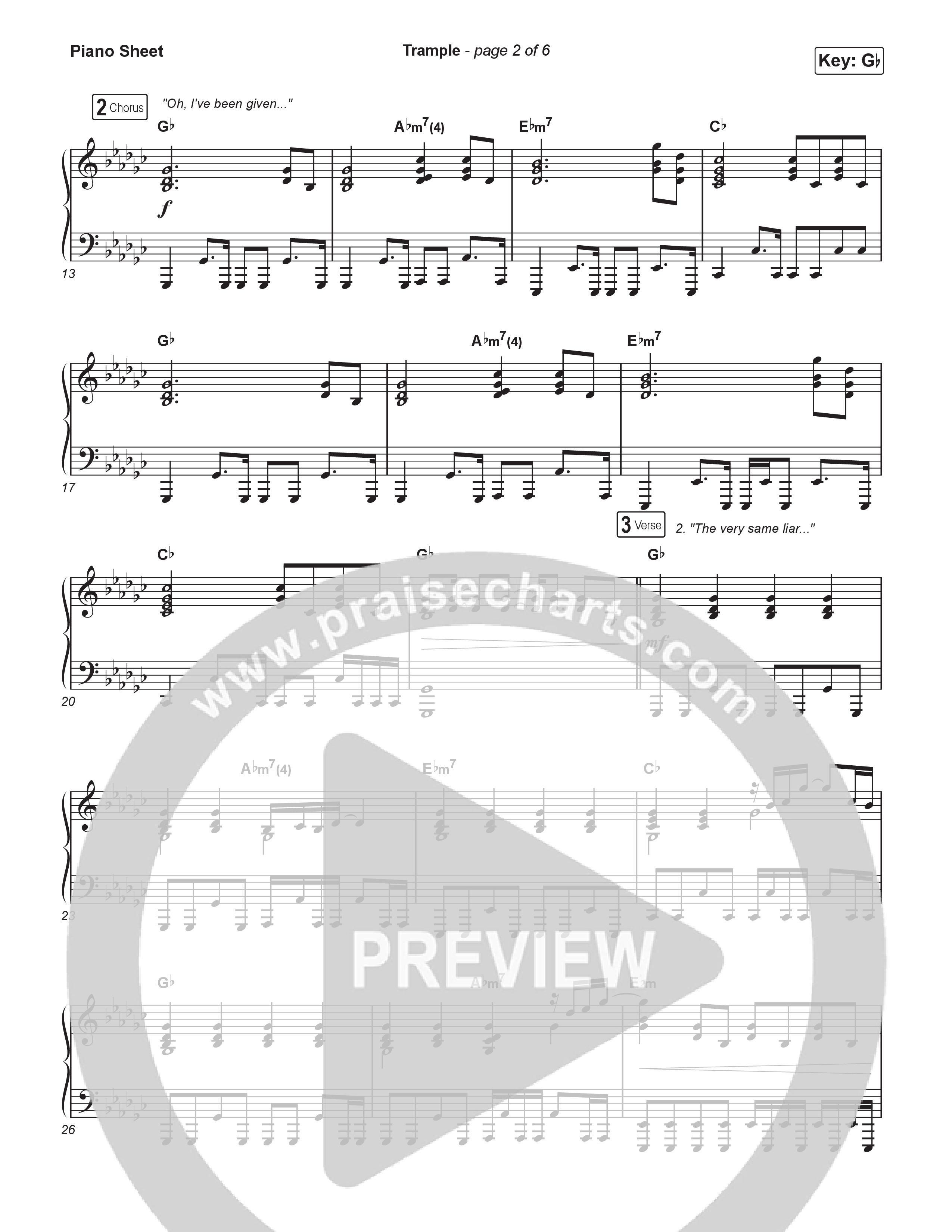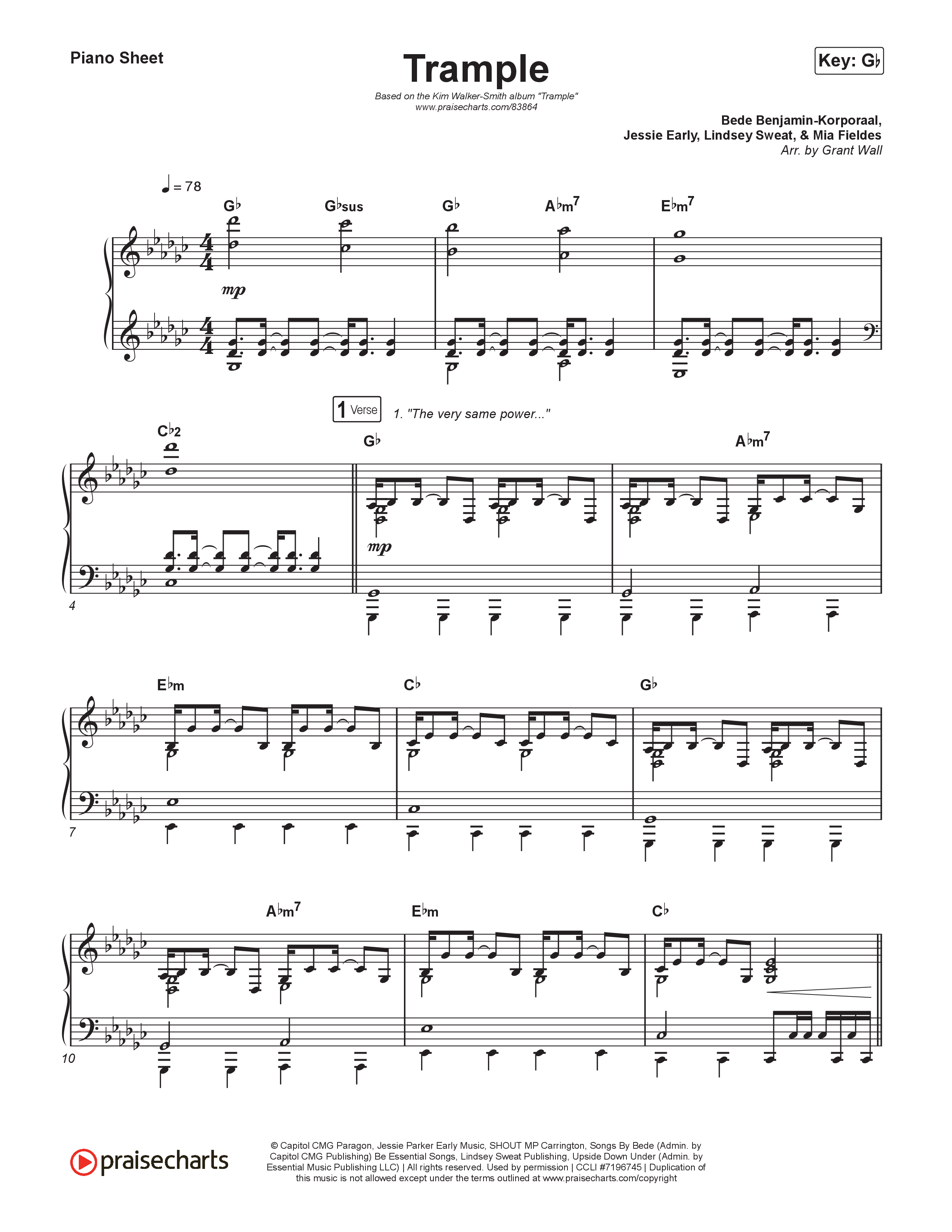 Download the piano sheet for Trample by Kim Walker-Smith, from the album Trample. This song was arranged by Grant Wall in the key of G, Gb.